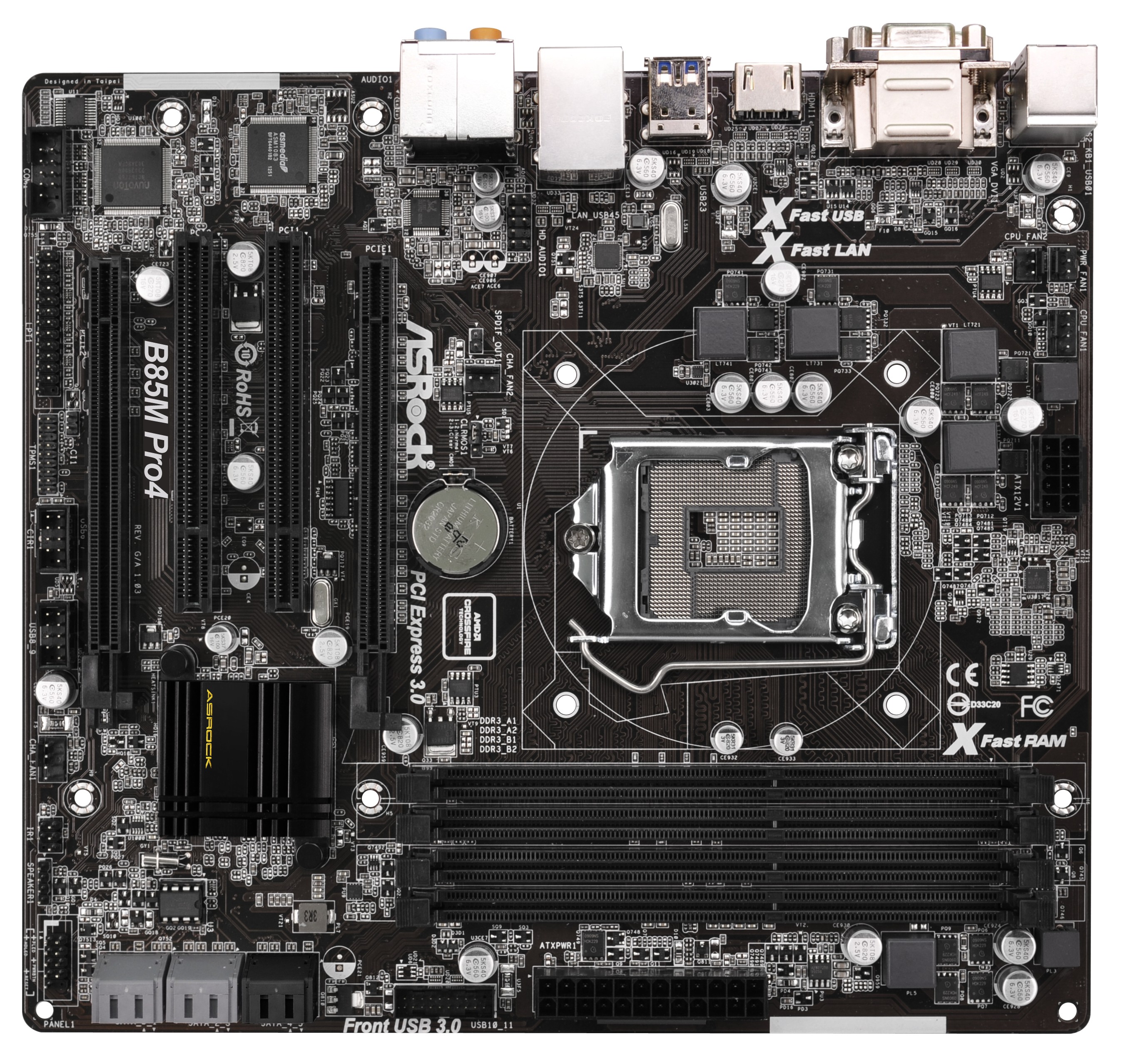 Asrock B85M Pro4. Tipi di memoria supportati: DDR3-SDRAM, tipo di slot di memoria: DIMM, Velocità di memoria supportate: 1066,1333,1666 MHz. Produttore processore: Intel, Processori compatibili: Intel® Celeron®, Intel® Pentium®, Presa per processore: LGA 1150 (Socket H3). Interfacce dell'unità di archiviazione supportate: Seriale ATA II, Serial ATA III. Controller LAN: Intel I217V, Tipo di interfaccia Ethernet: Fast Ethernet, Gigabit Ethernet. Componente per: PC, Famiglia di chipset per scheda madre: Intel, Chipset scheda madre: Intel B85