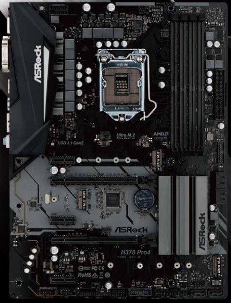 Asrock H370 Pro4, Intel, LGA 1151 (Presa H4), Intel® Celeron®, Intel® Core™ i3, Intel Core i5, Intel Core i7, i3-8xxx,i5-8xxx,i7-8xxx, DDR4-SDRAM, DIMM