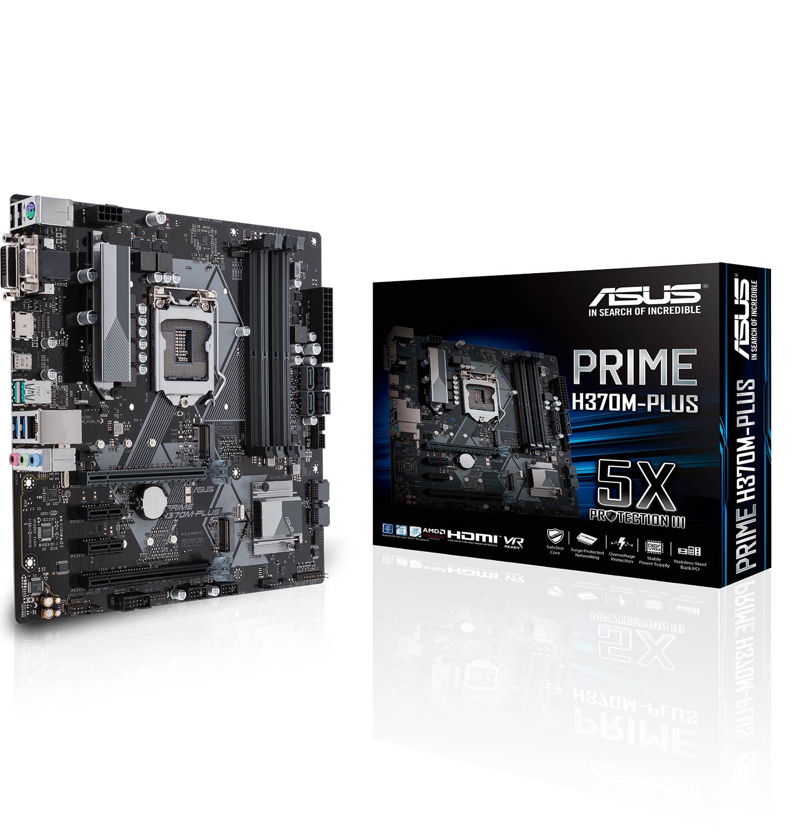 ASUS PRIME H370M-PLUS. Tipi di memoria supportati: DDR4-SDRAM, tipo di slot di memoria: DIMM, Velocità di memoria supportate: 2133,2400,2666 MHz. Produttore processore: Intel, Processori compatibili: Intel® Celeron®, Intel® Core™ i3, Intel Core i5, Intel Core i7, Intel® Pentium®, Presa per processore: LGA 1151 (Presa H4). Interfacce dell'unità di archiviazione supportate: M.2, Serial ATA III. Tipo di interfaccia Ethernet: Gigabit Ethernet, Controller LAN: Intel I219V. Componente per: PC, Famiglia di chipset per scheda madre: Intel, Chipset scheda madre: Intel® H370