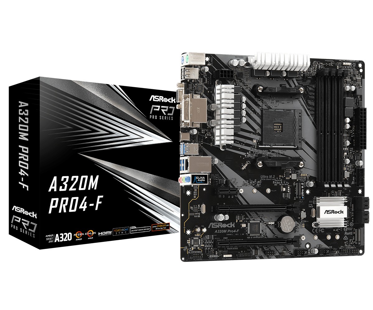 Asrock A320M Pro4-F, AMD, Presa AM4, AMD A,AMD Ryzen, DDR4-SDRAM, DIMM, 2133,2400,2667,2933,3200 MHz