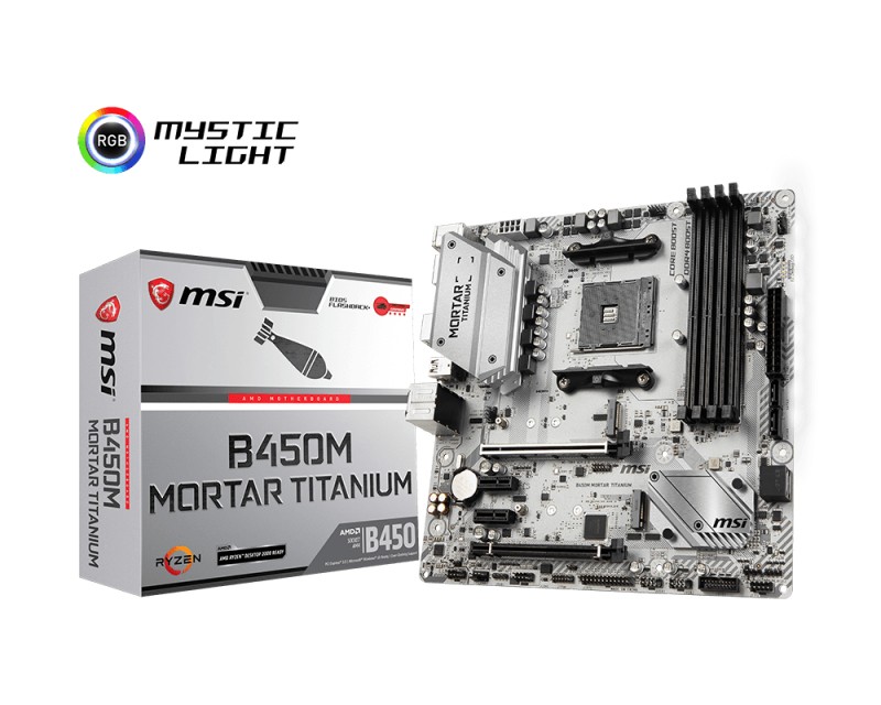 MSI B450M MORTAR TITANIUM, DDR4-SDRAM, DIMM, 1866,2133,2400,2667,2800,2933,3000,3066,3200,3466 MHz, Doppio, AMD, AMD Ryzen