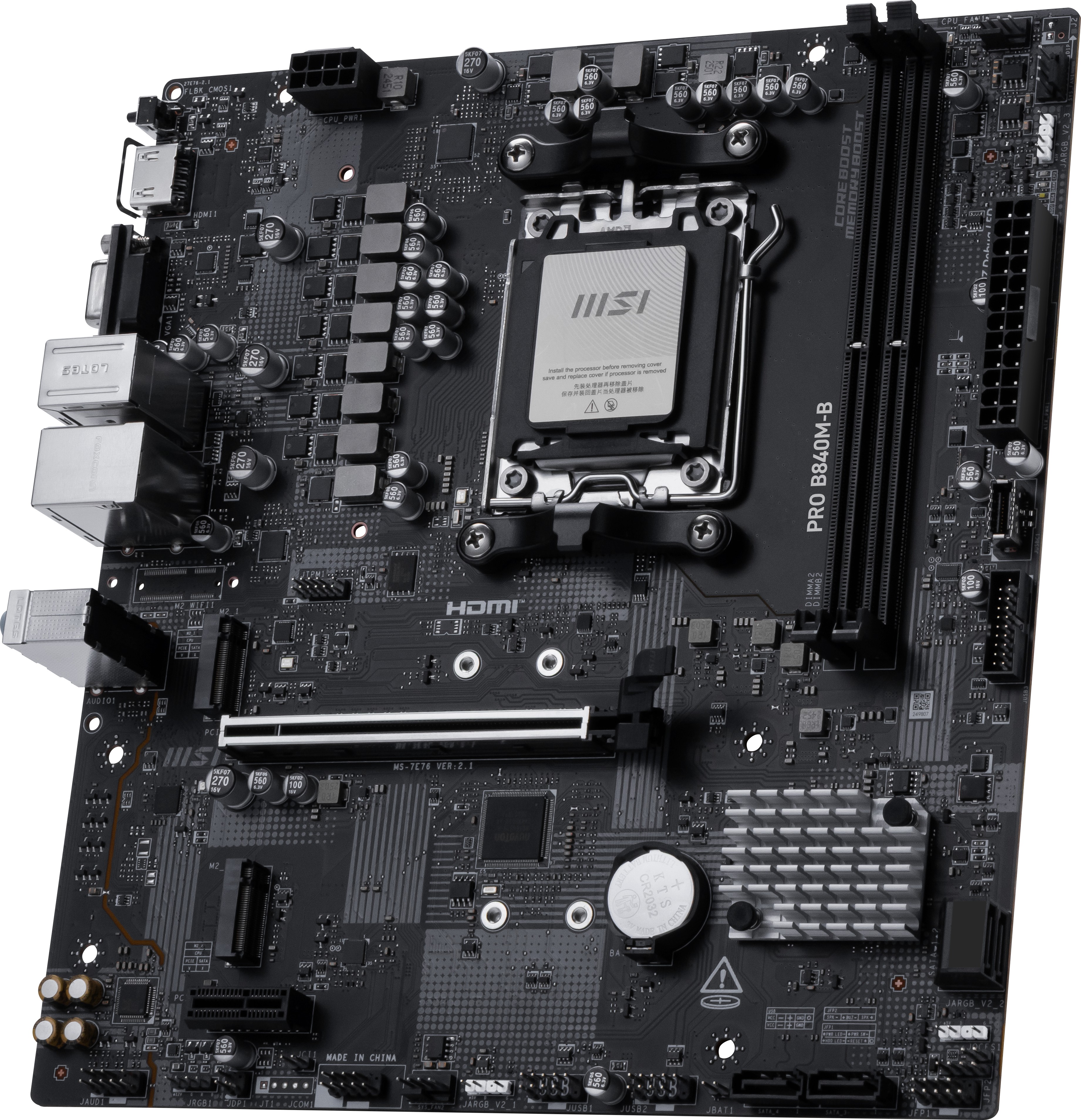 MSI PRO B840M-B, AMD, Socket AM5, AMD Ryzen 7000 Series, AMD Ryzen 8000 Series, AMD Ryzen 9000 Series, Socket AM5, DDR5-SDRAM, 128 GB