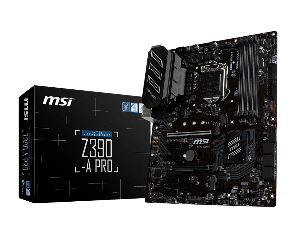 MSI Z390-A PRO, Intel, LGA 1151 (Presa H4), Intel® Celeron®, Intel® Core™ i3, Intel Core i5, Intel Core i7, Intel® Pentium®, DDR4-SDRAM, DIMM, 2133,2400,2666,2800,3000,3200,3300,3333,3400,3466,3600,3733,3866,4000,4133,4200,4266,4300,4400 MHz