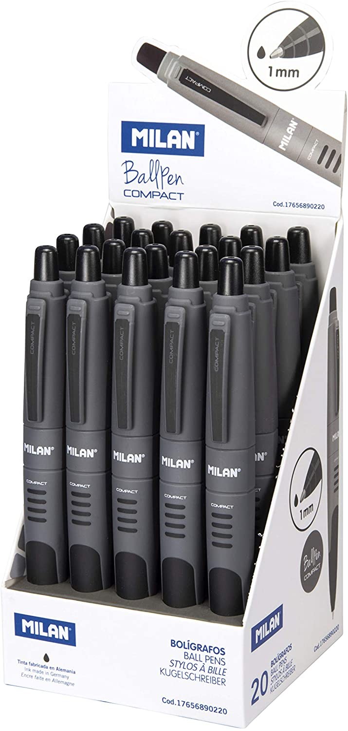 Recensioni Milan espositore di 20 Penne a Sfera Retrattili - Punta Rotonda 1mm - Corpo Grigio/Nero - Colore Nero