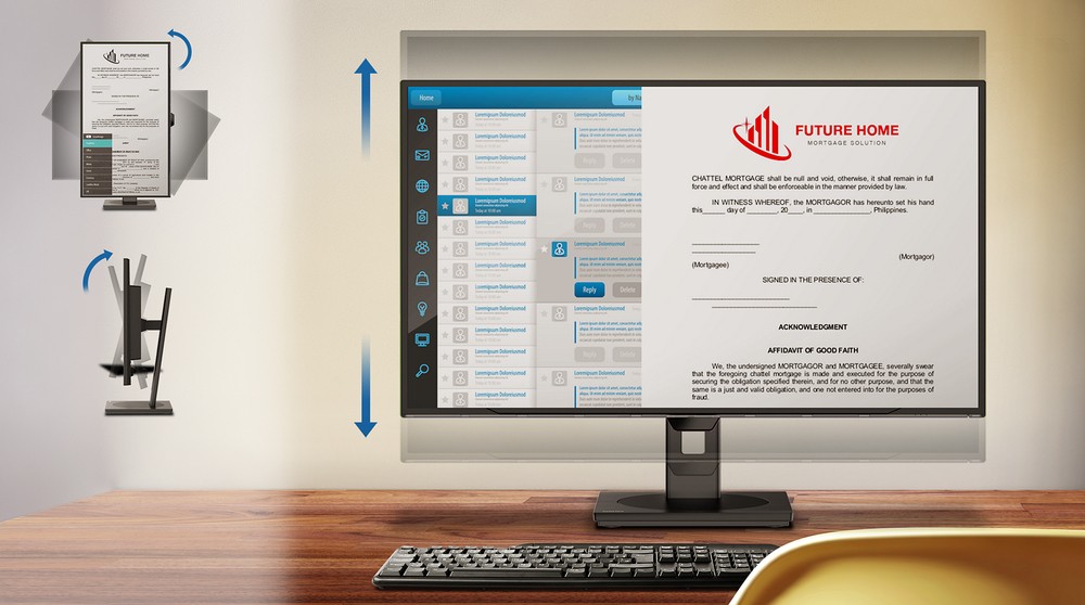 Inclinabile, girevole e ad altezza regolabile per il massimo comfort visivo