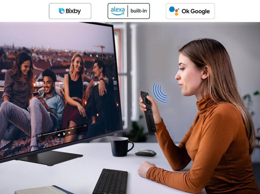 Controlla tutto con la tua voce con gli assistenti vocali integrati tra cui Bixby, Amazon Alexa e Google Assistant. Passa da un'app all'altra, riproduci e controlla i video e altro ancora.