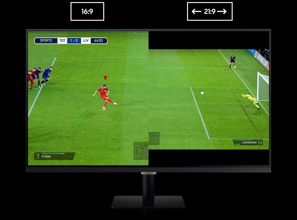 Ultrawide Game View Punta dritto alla vittoria. Imposta lo schermo sul formato 21:9 per scoprire le aree nascoste delle scene di gioco, grazie a Ultrawide Game View. Durante una partita di calcio potrai così avere una visione più ampia del campo, fino alla porta, mentre quando sei alla guida, la visuale della strada sarà più naturale e completa.