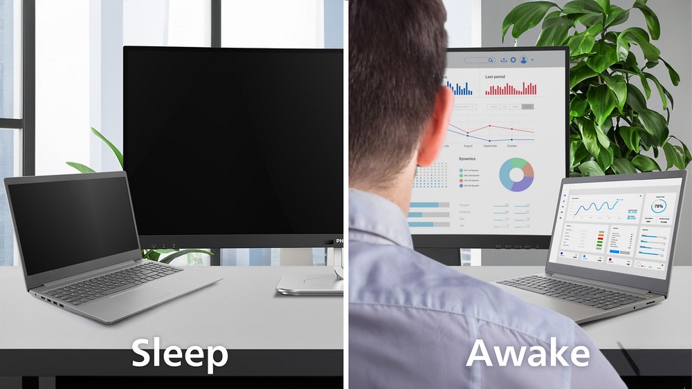La funzione PowerSensor 2 di questo monitor è in grado di ridurre il consumo energetico rilevando quando gli utenti si avvicinano o si allontanano dallo schermo. Dopo aver impostato l'OSD su "Utente", è necessario regolare le impostazioni di Windows 11 affinché funzioni correttamente. Una volta effettuate le regolazioni, il monitor e il PC/laptop collegati si attivano quando qualcuno si avvicina ed entrano in modalità standby quando qualcuno si allontana, riducendo di fatto il tempo di attività. La distanza per il rilevamento può essere modificata da 50, 75 a 120 cm dal laptop dell'utente. Tieni presente che è necessario installare Windows 11.