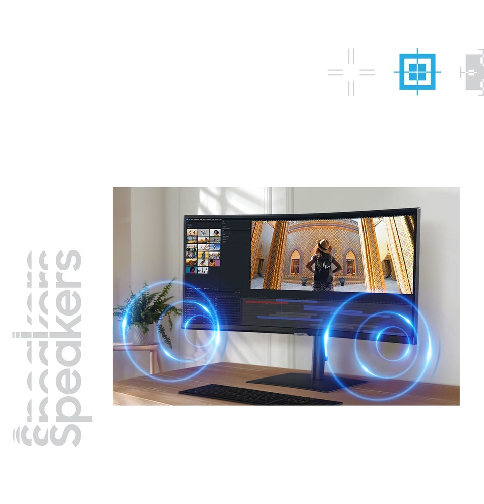 Samsung Monitor HRM ViewFinity S6 - S65UC da 34'' WQHD Curvo. Dimensioni diagonale schermo: 86,4 cm (34"), Risoluzione del display: 3440 x 1440 Pixel, Tipologia HD: UltraWide Quad HD, Tecnologia display: LCD, Tempo di risposta: 5 ms, Rapporto d'aspetto nativo: 21:9, Angolo di visualizzazione (orizzontale): 178°, Angolo di visualizzazione (verticale): 178°. Altoparlanti incorporati. Hub USB integrato, Versione dell'hub USB: 3.2 Gen 1 (3.1 Gen 1). Montaggio standard VESA, Regolazione altezza. Colore del prodotto: Nero