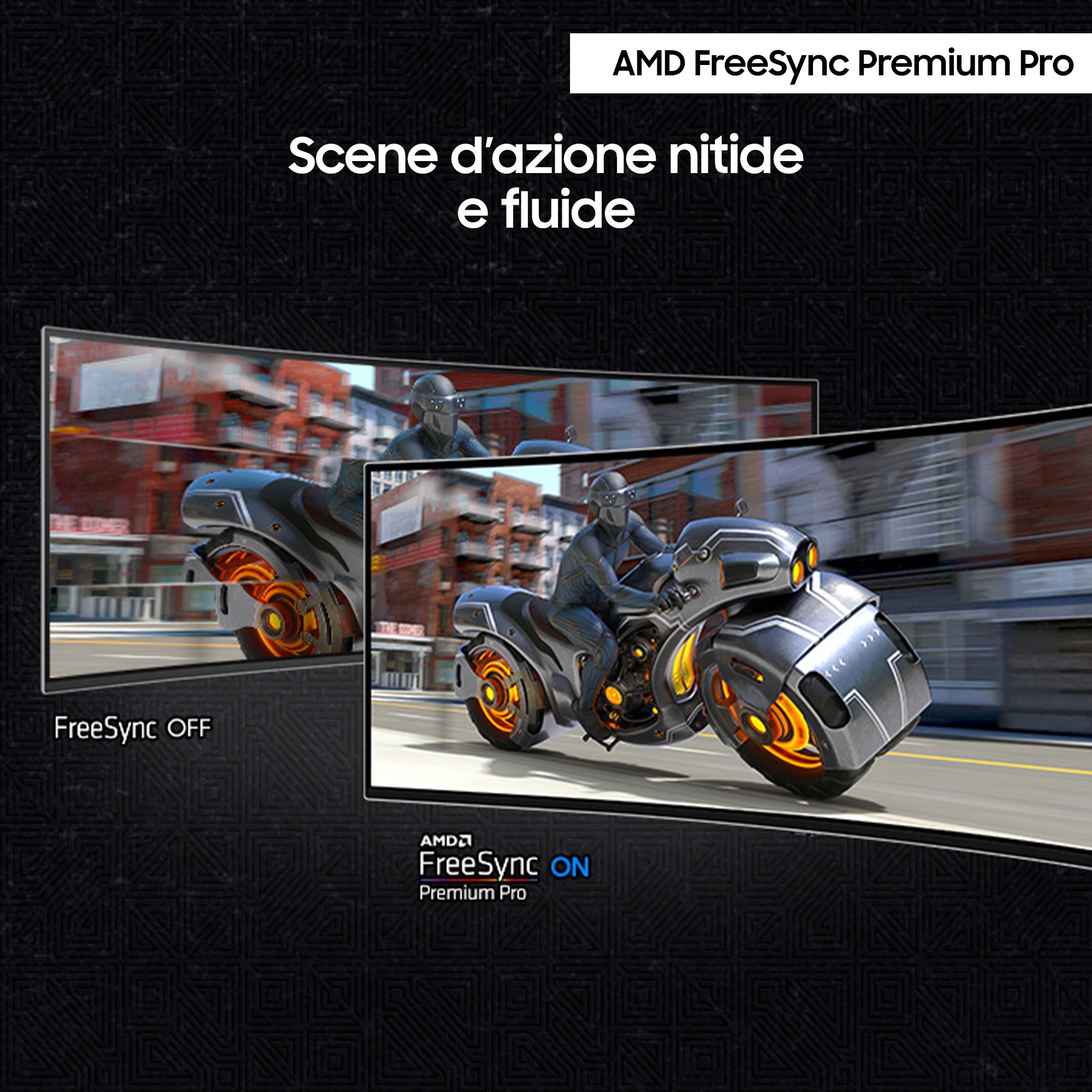 Azione di gioco senza intoppi. Con la compatibilità G-Sync, che permette la sincronizzazione tra la GPU e il pannello, effetto mosso, ritardi e immagini tagliate sono solo un lontano ricordo. In più, AMD FreeSync Premium Pro soddisfa la tua voglia di competizione con scene di gioco stabili e prive di distorsioni, anche quelle più complesse e rapide.