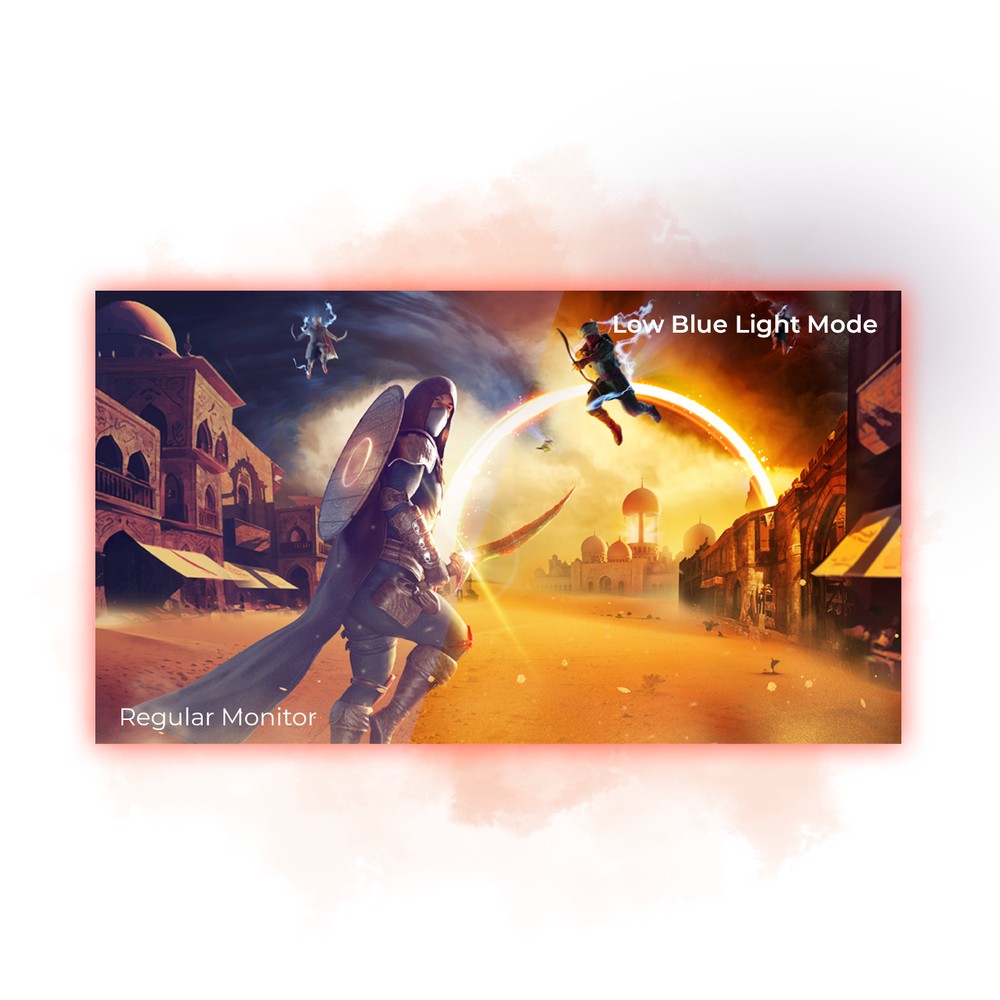 Le onde di luce blu corte possono danneggiare la vista. La tecnologia Low Blue Light di AOC blocca i dannosi raggi di luce blu, senza cambiare il colore del display. Altri tentativi di ridurre i filtri utilizzano la luce blu o impostazioni che causano immagini fioche/giallastre.