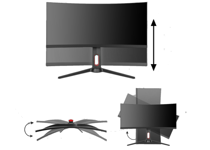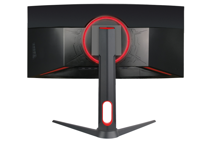 Il monitor ha base gaming 4D con alzata di ben 12cm e passacavi incorporato ed e' illuminato posteriormente con luce rossa. Freesync e Overboost completano l'assetto gaming.