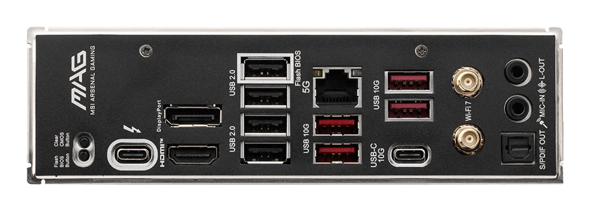 MSI MAG B860 TOMAHAWK WIFI. Produttore processore: Intel, Presa per processore: LGA 1851 (Socket V1), Processori compatibili: Intel Core Ultra (Series 2). Tipi di memoria supportati: DDR5-SDRAM, RAM massima supportata: 256 GB, tipo di slot di memoria: DIMM. Interfacce dell'unità di archiviazione supportate: M.2, Micro SATA III, Tipi di unità di archiviazione supportate: HDD & SSD, Livelli RAID: 0, 1, 5, 10. Tipo di interfaccia Ethernet: 5 Gigabit Ethernet, Wi-Fi standard: Wi-Fi 7 (802.11be), Standard Wi-Fi: 802.11a, 802.11b, 802.11g, Wi-Fi 4 (802.11n), Wi-Fi 5 (802.11ac), Wi-Fi 6 (802.11ax), Wi-Fi 6E.... Componente per: PC, Fattore di forma scheda madre: ATX, Famiglia di chipset per scheda madre: AMD