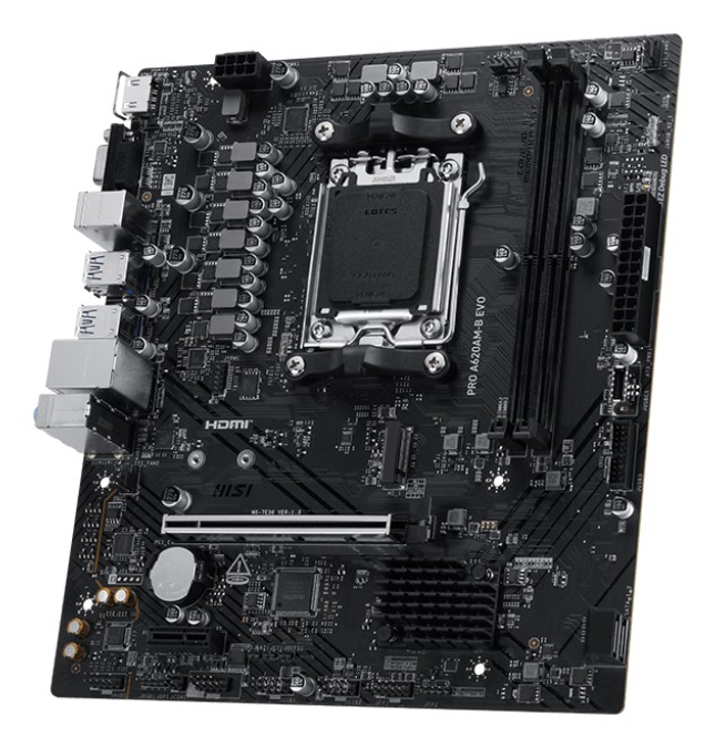 MSI PRO A620AM-B EVO, AMD, Socket AM5, AMD Ryzen 7000 Series, AMD Ryzen 8000 Series, AMD Ryzen 9000 Series, Socket AM5, DDR5-SDRAM, 128 GB