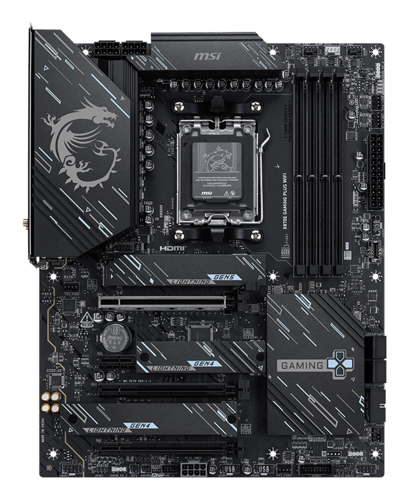 MSI X870E GAMING PLUS WIFI, AMD, Socket AM5, AMD Ryzen 7000 Series, AMD Ryzen 8000 Series, AMD Ryzen 9000 Series, Socket AM5, DDR5-SDRAM, 256 GB