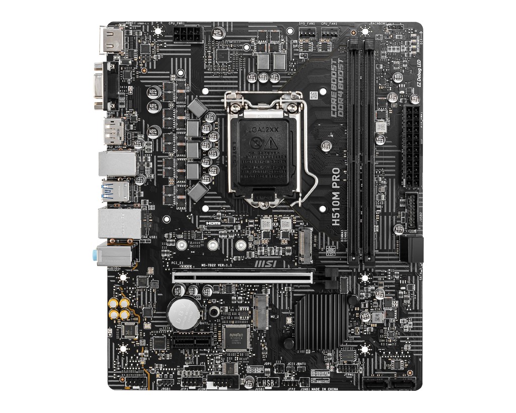 MSI H510M PRO, Intel, LGA 1200, Intel® Celeron®, Intel® Core™ i5, Intel® Core™ i7, Intel® Core™ i9, Intel® Pentium®, DDR4-SDRAM, 64 GB, DIMM