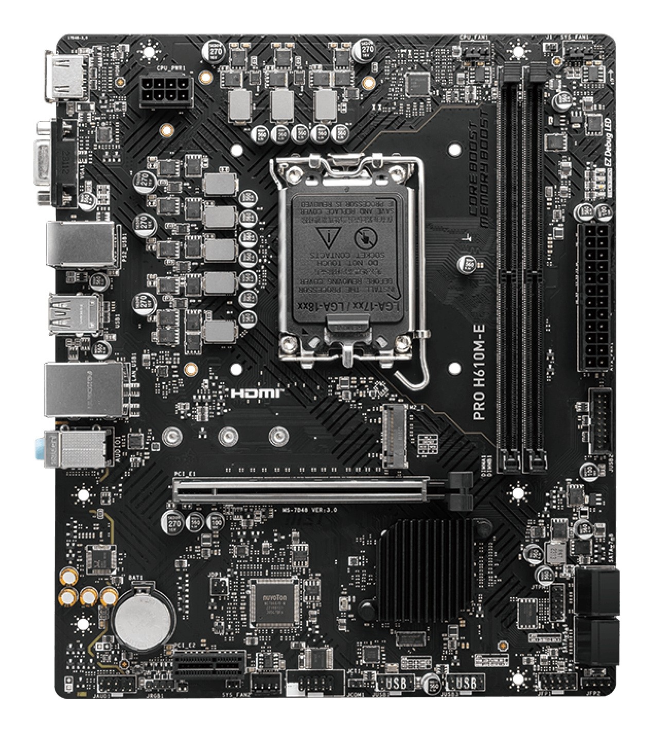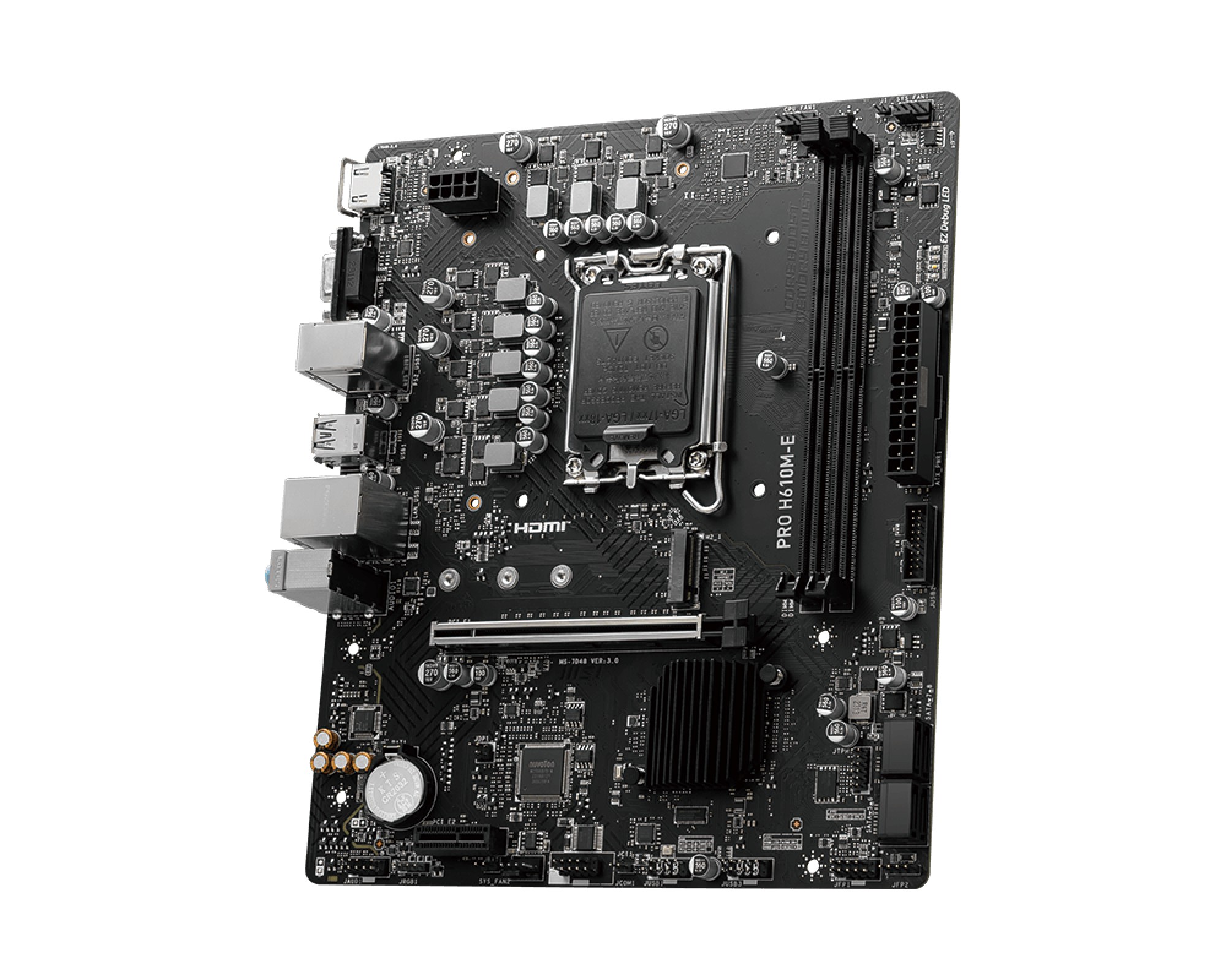 MSI PRO H610M-E, Intel, LGA 1700, Intel® Celeron®, Intel® Core™ i3, Intel® Core™ i5, Intel® Core™ i7, Intel® Core™ i9,..., LGA 1700, DDR5-SDRAM, 96 GB