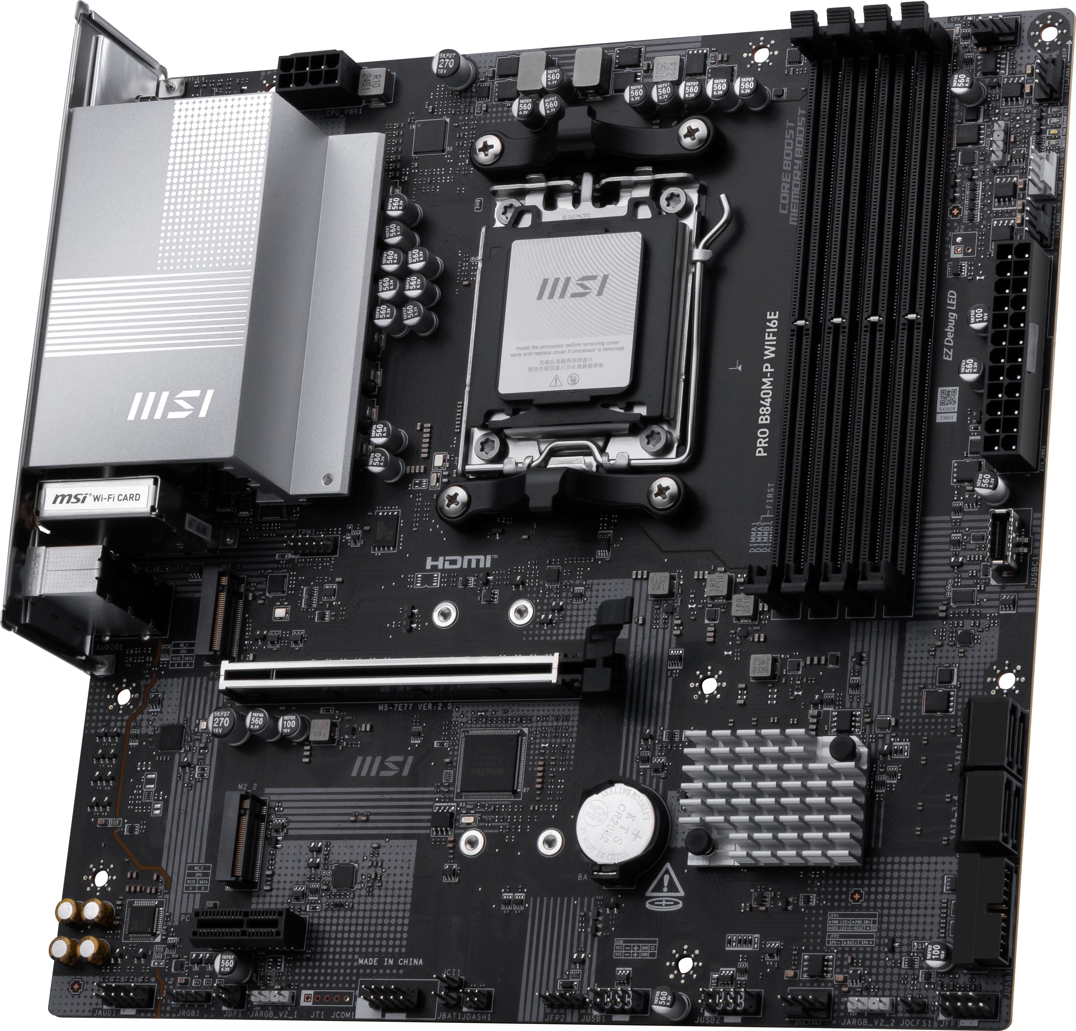 MSI PRO B840M-P WIFI6E, AMD, Socket AM5, AMD Ryzen 7000 Series, AMD Ryzen 8000 Series, AMD Ryzen 9000 Series, Socket AM5, DDR5-SDRAM, 256 GB