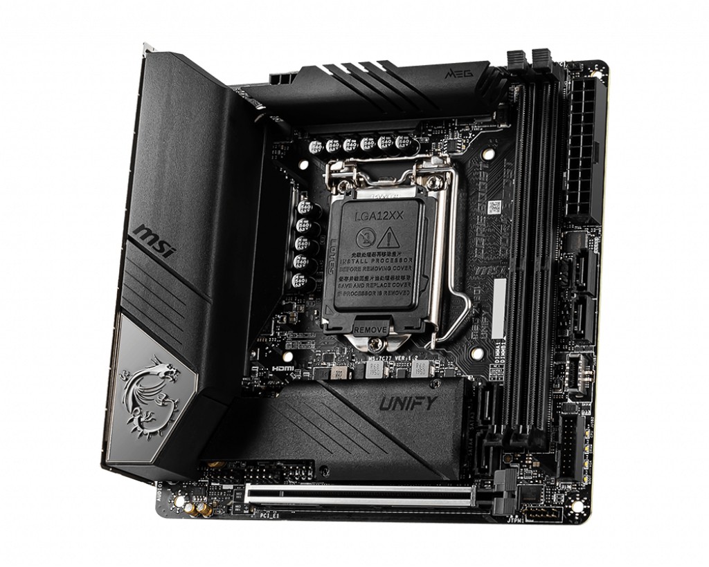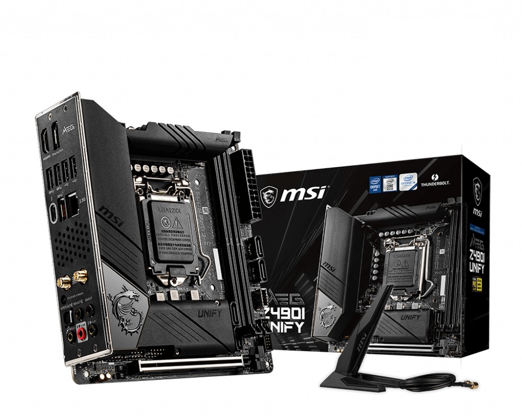 MSI MEG Z490I UNIFY, Intel, LGA 1200, Intel® Celeron®, Intel® Core™ i3, Intel® Core™ i5, Intel® Core™ i7, Intel® Core™ i9, Intel® Pentium®, DDR4-SDRAM, 64 GB, DIMM