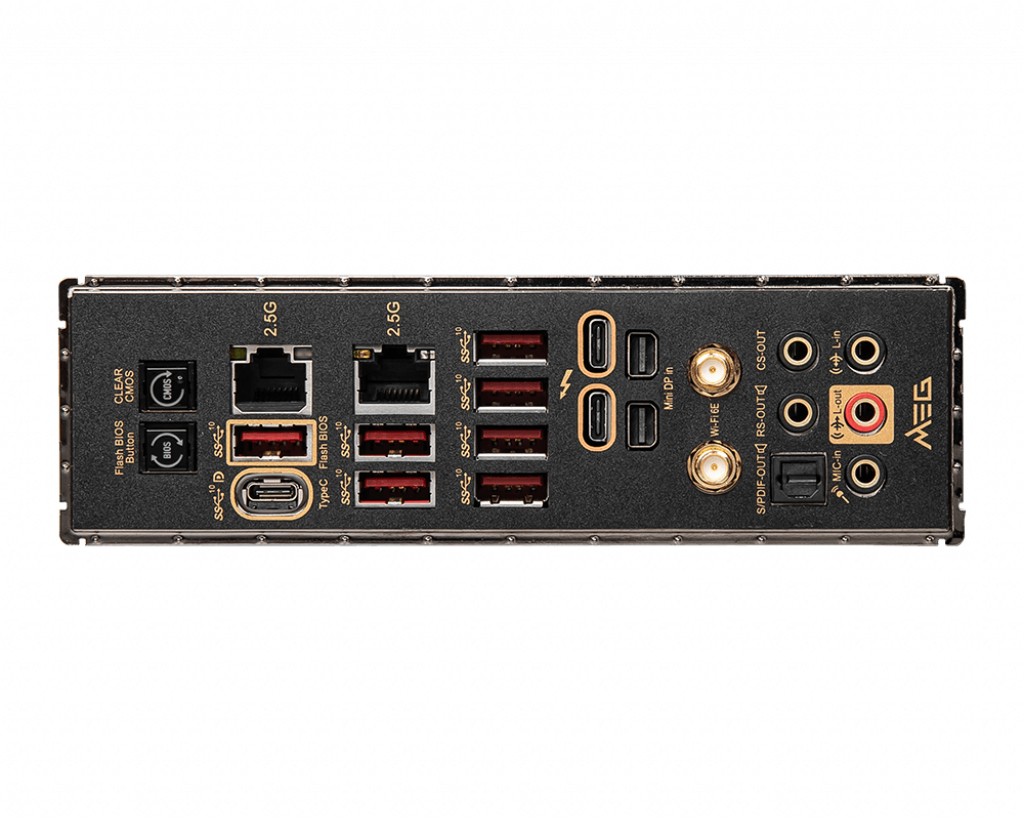 MSI MEG Z690 ACE. Produttore processore: Intel, Presa per processore: LGA 1700, Processori compatibili: Intel® Celeron®, Intel® Core™ i3, Intel® Core™ i5, Intel® Core™ i7, Intel® Core™ i9, Intel® Pentium®. Tipi di memoria supportati: DDR5-SDRAM, RAM massima supportata: 128 GB, tipo di slot di memoria: DIMM. Interfacce dell'unità di archiviazione supportate: M.2, SATA III, Tipi di unità di archiviazione supportate: HDD & SSD, Livelli RAID: 0, 1, 5, 10. Tecnologia di processo parallela: CrossFire, SLI. Tipo di interfaccia Ethernet: 2.5 Gigabit Ethernet, Controller LAN: Intel I225-V, Wi-Fi standard: Wi-Fi 6E (802.11ax)
