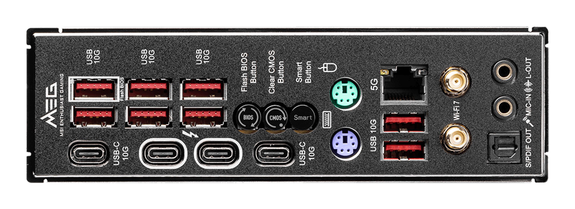 MSI MEG Z890 UNIFY-X. Produttore processore: Intel, Presa per processore: LGA 1851 (Socket V1), Processori compatibili: Intel Core Ultra (Series 2). Tipi di memoria supportati: DDR5-SDRAM, RAM massima supportata: 128 GB, tipo di slot di memoria: DIMM. Interfacce dell'unità di archiviazione supportate: M.2, SATA III, Tipi di unità di archiviazione supportate: HDD & SSD, Livelli RAID: 0, 5, 10. Tipo di interfaccia Ethernet: 5 Gigabit Ethernet, Wi-Fi standard: Wi-Fi 7 (802.11be), Standard Wi-Fi: 802.11a, 802.11b, 802.11g, Wi-Fi 4 (802.11n), Wi-Fi 5 (802.11ac), Wi-Fi 6 (802.11ax), Wi-Fi 6E.... Componente per: PC, Fattore di forma scheda madre: ATX, Famiglia di chipset per scheda madre: Intel