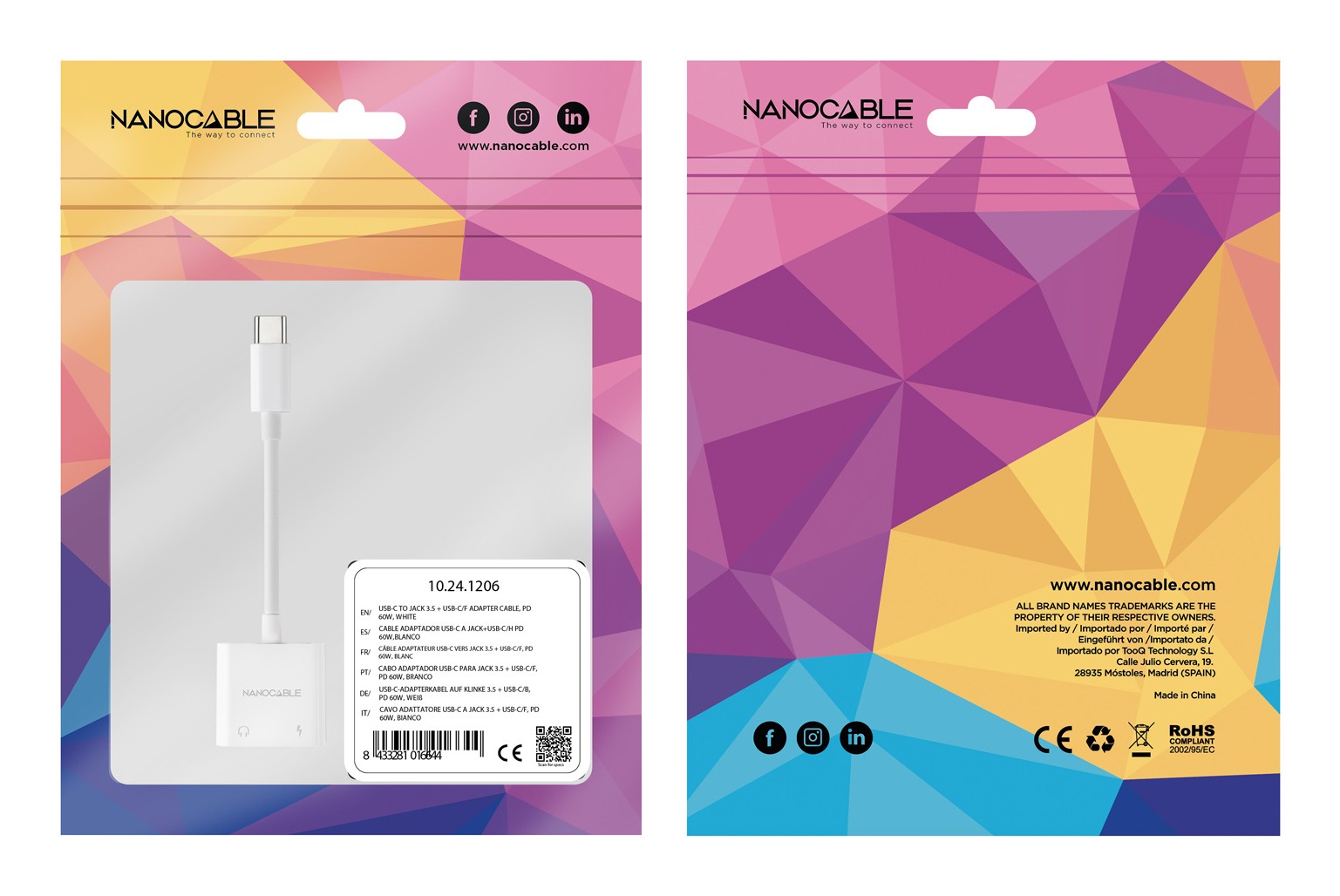 Nanocable 10.24.1206. Tecnologia di connessione: Cablato, Interfaccia host: USB 3.2 Gen 1 (3.1 Gen 1) Type-C, Fornitura di alimentazione USB fino a: 60 W. Colore del prodotto: Bianco, Paese di origine: Cina. Tipologia alimentazione: USB, Connettore di alimentazione: USB tipo-C, Lunghezza cavo USB: 0,115 m. Quantità per pacco: 1 pz, Larghezza imballo: 180 mm, Profondità imballo: 10 mm
