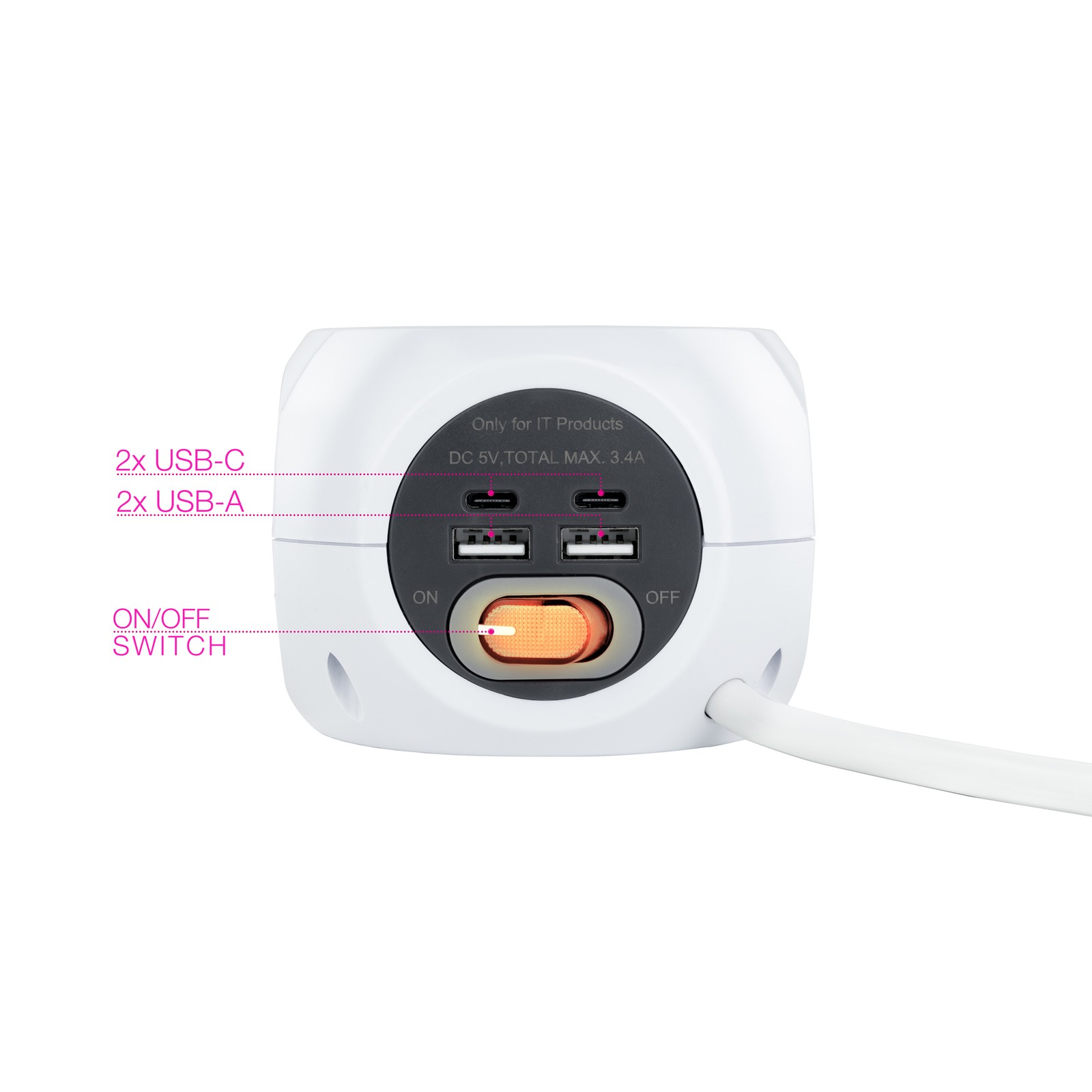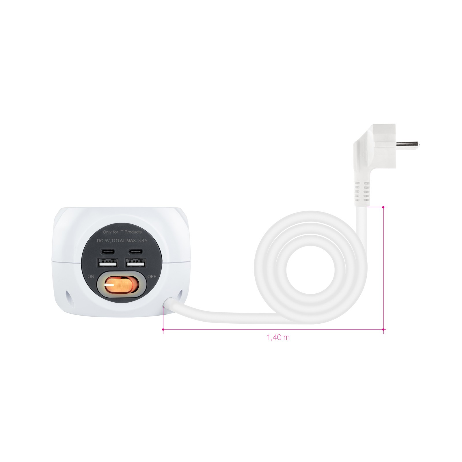 Nanocable 10.37.0001. Tipo di caricatore: Interno, Tipologia alimentazione: AC, Compatibilità caricatore: Universale. Voltaggio di ingresso: 230 - 250 V. Quantità porte USB 2.0: 2, Quantità di porte USB Tipo C: 2. Lunghezza cavo: 1,4 m, Colore del prodotto: Bianco