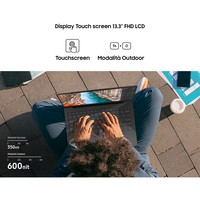 Tra le pareti domestiche o in piena luce diurna, con il display di Galaxy Book S avrai sempre immagini nitide e luminose. Il display touchscreen si attiva con un semplice gesto per garantirti la massima praticità e la luminosità può essere aumentata fino a 600 nit passando alla modalità Outdoor (Fn+O).