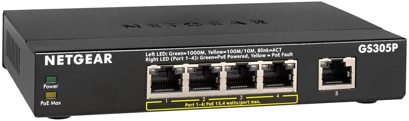 Recensioni NETGEAR GS305P 5-Port PoE Gigabit Ethernet Unmanaged Switch Fanless Metal Cost-effective Low-power consumption