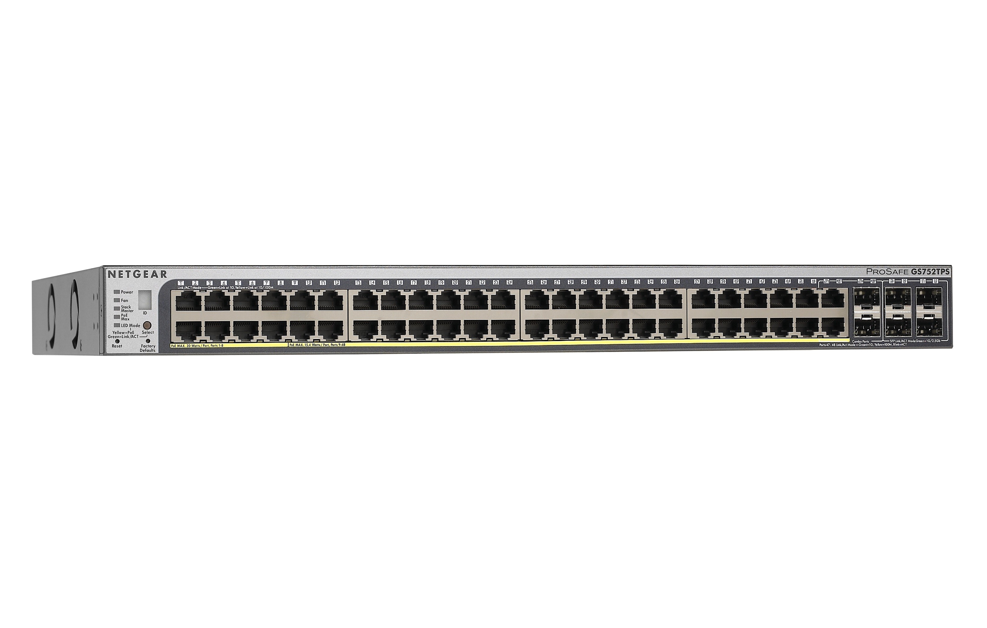 Netgear GS752TPSB-100EUS. Tipo interruttore: Gestito, Livello del commutatore: L3. Quantità di porte RJ-45: 48. Full duplex, Standard di rete: IEEE 802.3,IEEE 802.3ab,IEEE 802.3af,IEEE 802.3at,IEEE 802.3az,IEEE 802.3u,IEEE 802.3x,IEEE 802.3z. Supporto Power over Ethernet (PoE). Montaggio rack, Fattore di forma: 1U