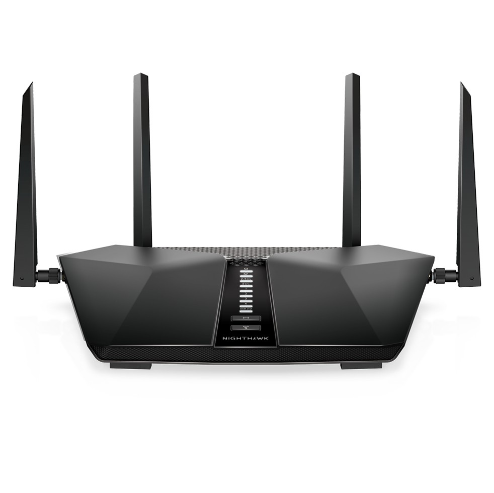 Netgear Nighthawk AX5400. Banda Wi-Fi: Dual-band (2.4 GHz/5 GHz), Wi-Fi standard: Wi-Fi 6 (802.11ax), Intervallo di trasferimento dei dati WLAN (max): 5400 Mbit/s. Tipo di interfaccia LAN Ethernet: Gigabit Ethernet, Standard di rete: IEEE 802.11a,IEEE 802.11ac,IEEE 802.11ax,IEEE 802.11b,IEEE 802.11g,IEEE 802.11i,IEEE 802.11n. Algoritmi di sicurezza supportati: 128-bit AES,WPA3. Tipo di prodotto: Router da tavolo, Colore del prodotto: Nero. Tipo di antenna: Esterno
