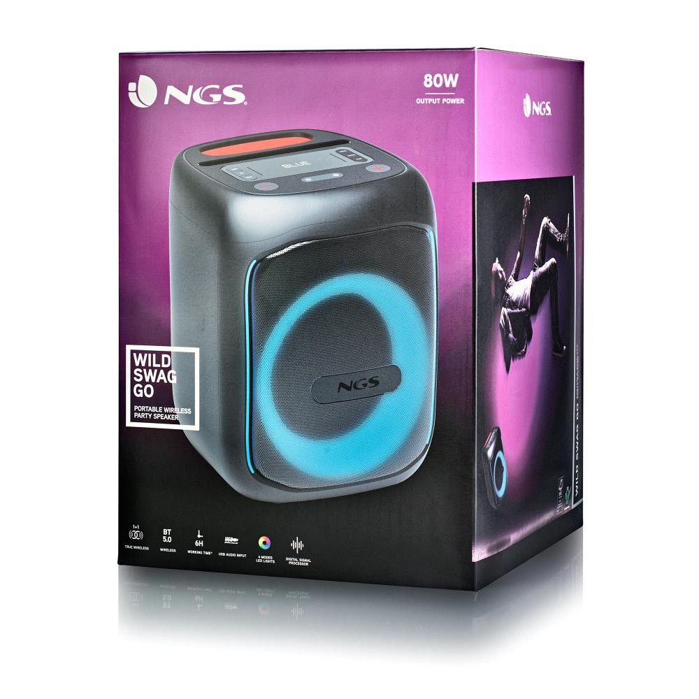 NGS WILD SWAG GO, 40 W, 80 W, Con cavo e senza cavo, Altoparlante da festa, Nero, LED