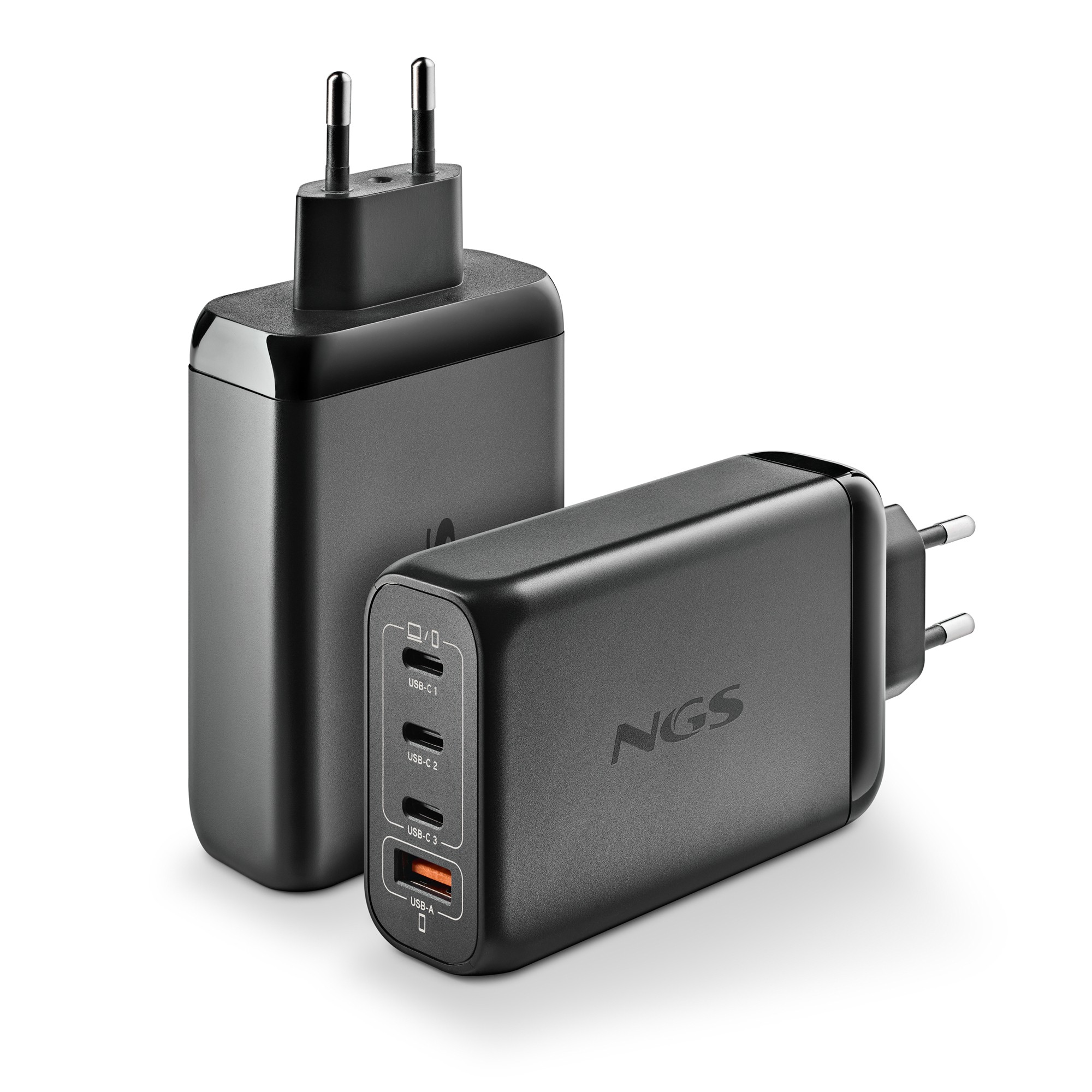 NGS BUD 140W. Tipo di caricatore: Interno, Tipologia alimentazione: AC, Compatibilità caricatore: Universale. Voltaggio di ingresso: 100 - 240 V, Tensione di uscita (max): 28 V, Adattatore di corrente output AC: 5 A. Quantità di porte USB Tipo C: 3, Ricarica rapida. Colore del prodotto: Nero