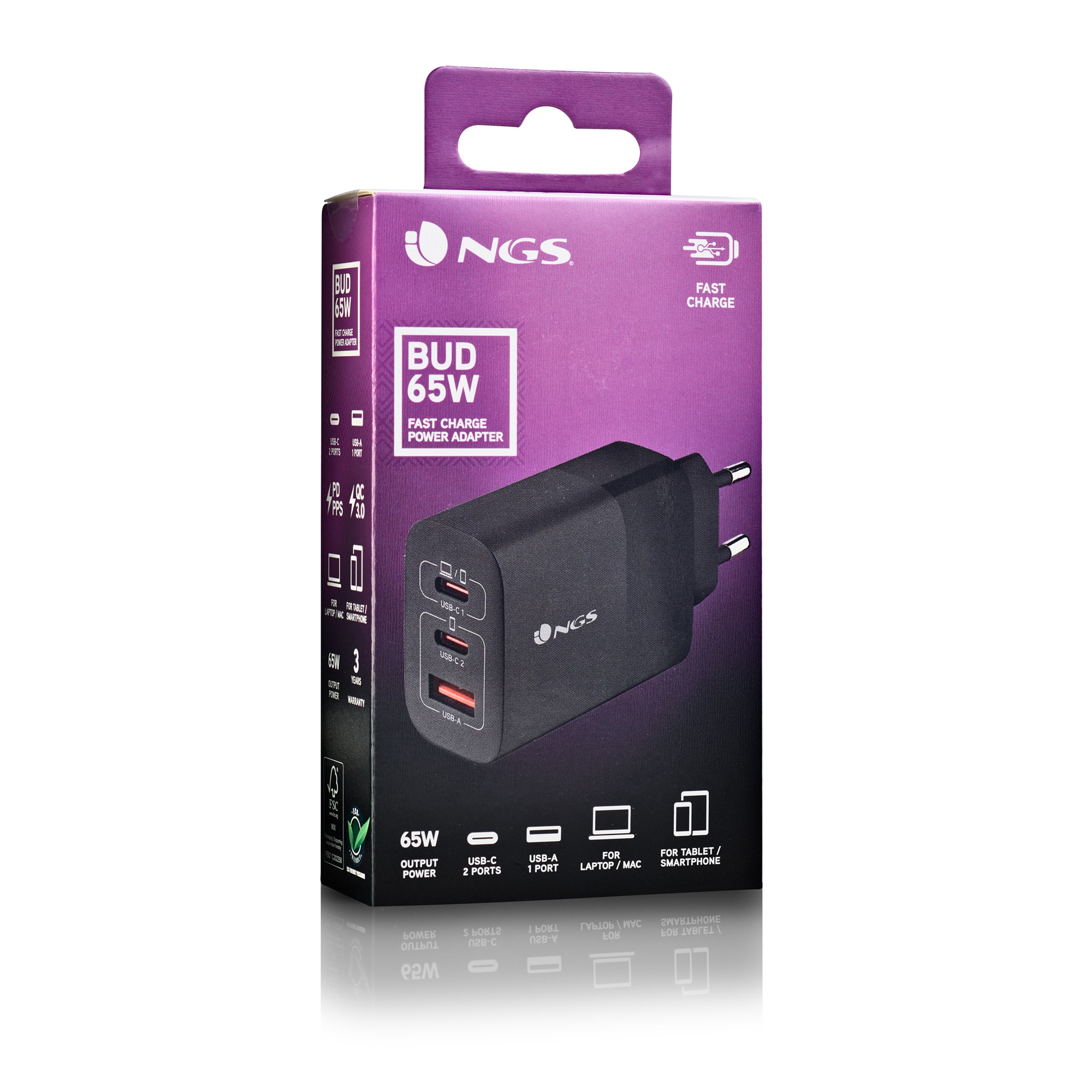 Recensioni Ngs Caricatore Da Parete Ultraveloce Da 65 W Con 3 Porte: 2 Usb-C + Usb-A