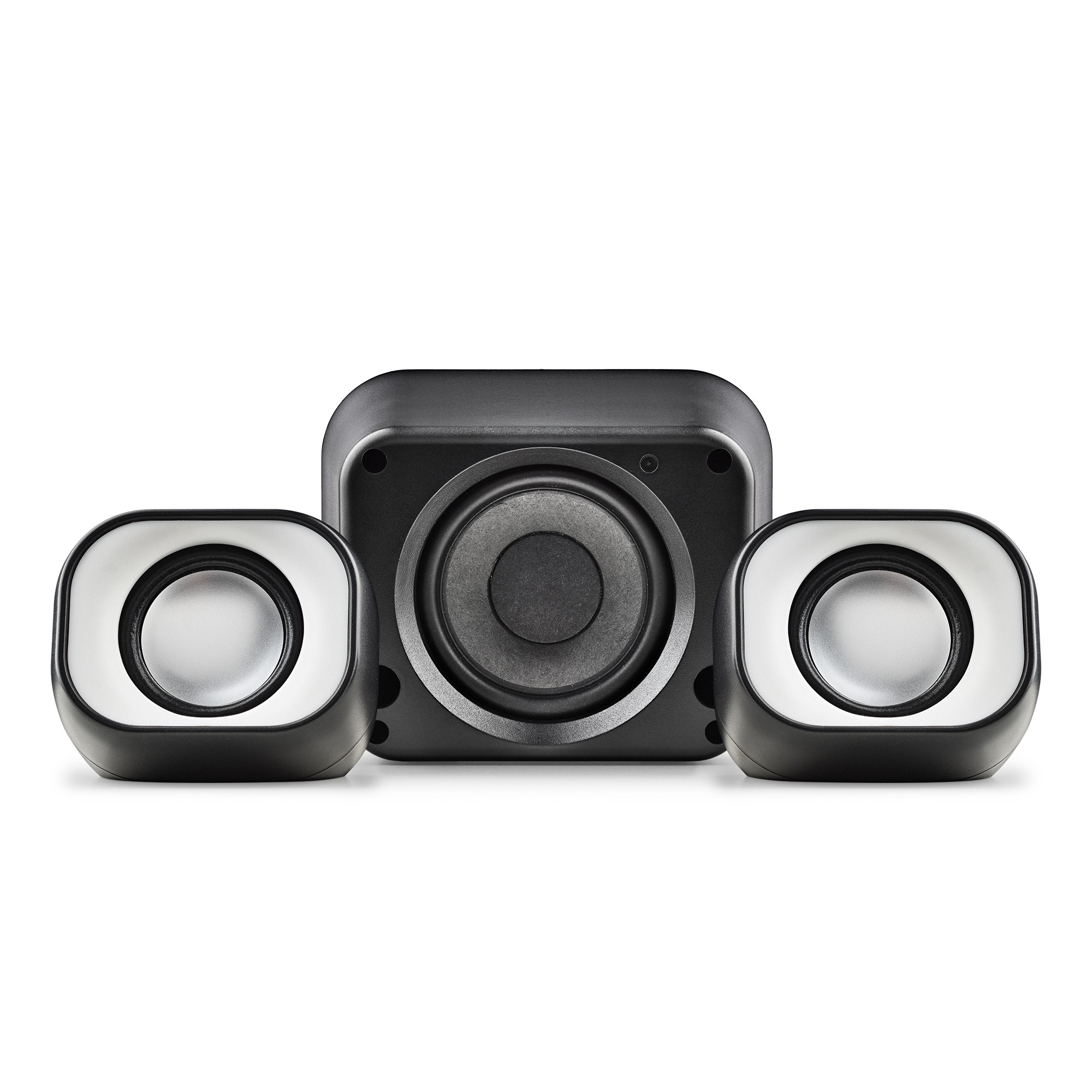 NGS COMET 2.1. Sistema audio: 2.1 canali, Potenza in uscita (RMS): 11 W, Utilizzo raccomandato: Universale. Tipologia altoparlante satellite: 2-vie, Potenza Satellites RMS: 3 W, Gamma freq. altoparlante satellitare: 150 - 20000 Hz. Tipo di subwoofer: Subwoofer attivo, Potenza RMS subwoofer: 5 W, Dimensioni subwoofer (LxPxH): 128 x 100 x 107 mm. Alimentazione: DC/USB, Tensione di ingresso AC: 5 V. Cavi inclusi: dC