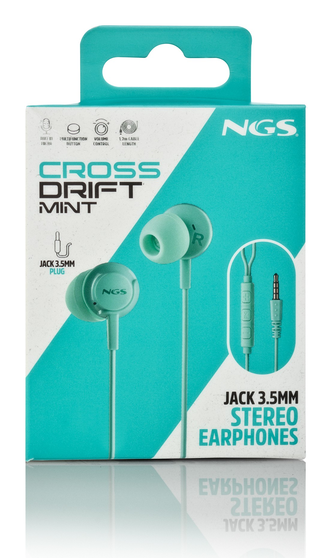 NGS CROSS DRIFT MINT, Cablato, 20 - 20000 Hz, Musica e Chiamate, 11 g, Auricolare, Colore menta