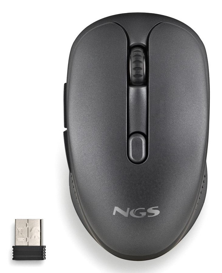 NGS EVO PEEP. Fattore di forma: Mano destra. Tecnologia di rilevamento del movimento: Laser, Interfaccia dispositivo: RF senza fili + Bluetooth, Risoluzione movimento: 3200 DPI, Tipo di pulsanti: Tasti premuti, Numero di tasti: 5, Tipo di scorimmento: Rotella. Alimentazione: Batterie. Colore del prodotto: Nero