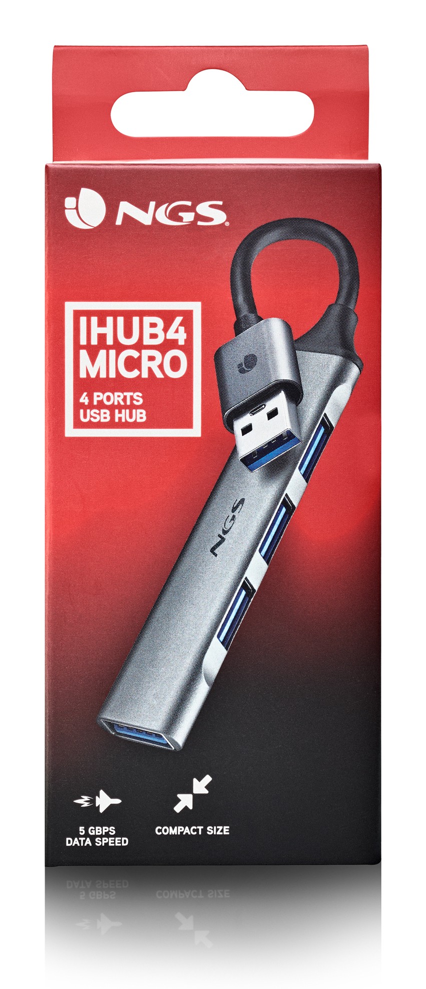 NGS IHUB4 MICRO, USB 3.2 Gen 1 (3.1 Gen 1) Type-A, USB 2.0, USB 3.2 Gen 1 (3.1 Gen 1) Type-A, 5000 Mbit/s, Argento, Cavo tondo, 0,1 m