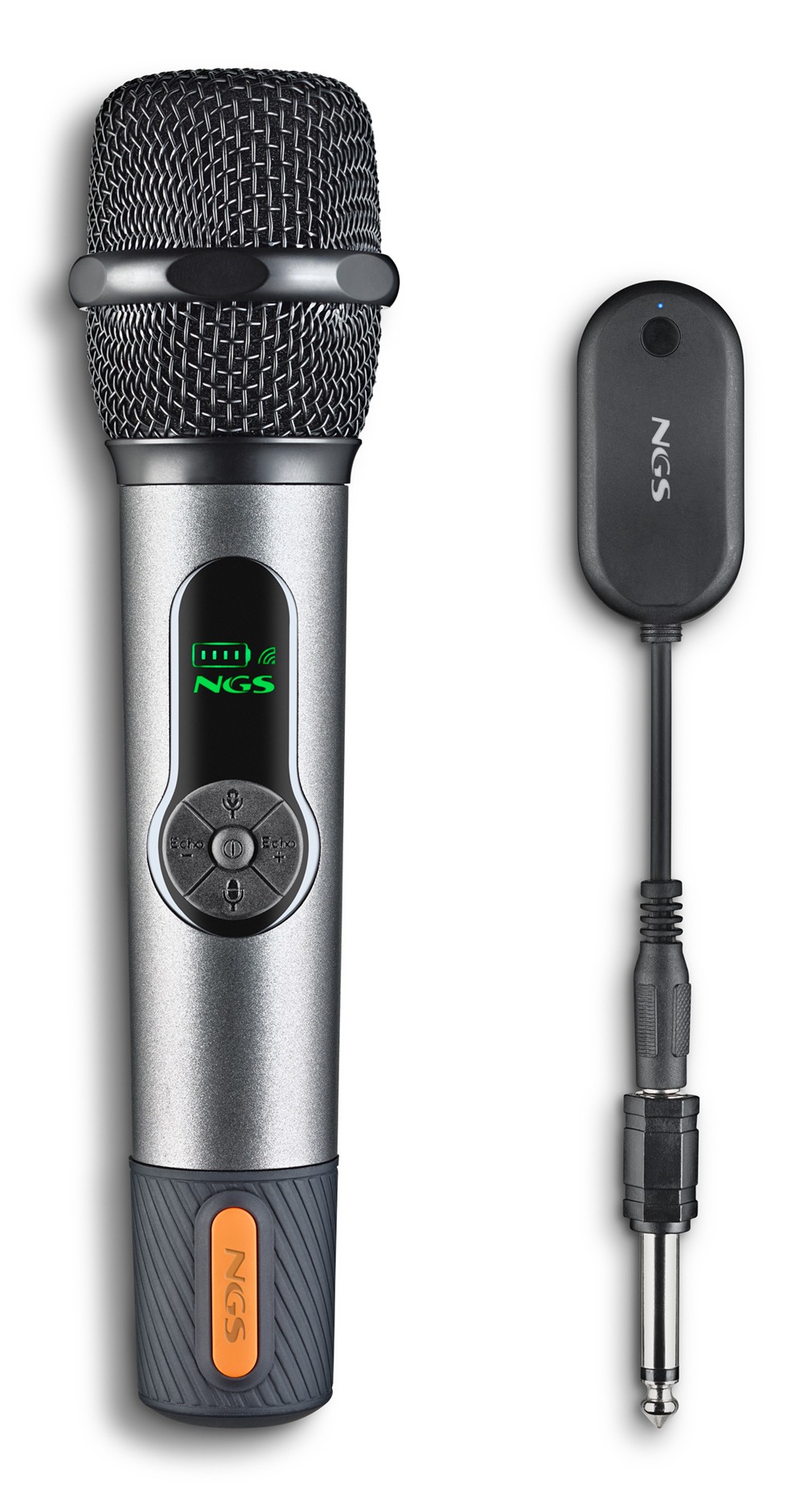 NGS SINGER STAR. Tipo: Microfono per palco/spettacolo, Frequenza microfono: 15 - 12000 Hz, Microfono Signal-to-Noise Ratio (SNR): 86 dB. Tecnologia di connessione: Wireless, Interfaccia dispositivo: RF, Massima distanza di funzionamento: 15 m. Colore del prodotto: Nero. Alimentazione: Batteria, Tecnologia batteria: Ioni di Litio, Capacità della batteria: 1500 mAh. Altezza: 210 mm, Diametro: 4,8 cm, Peso microfono: 210 g