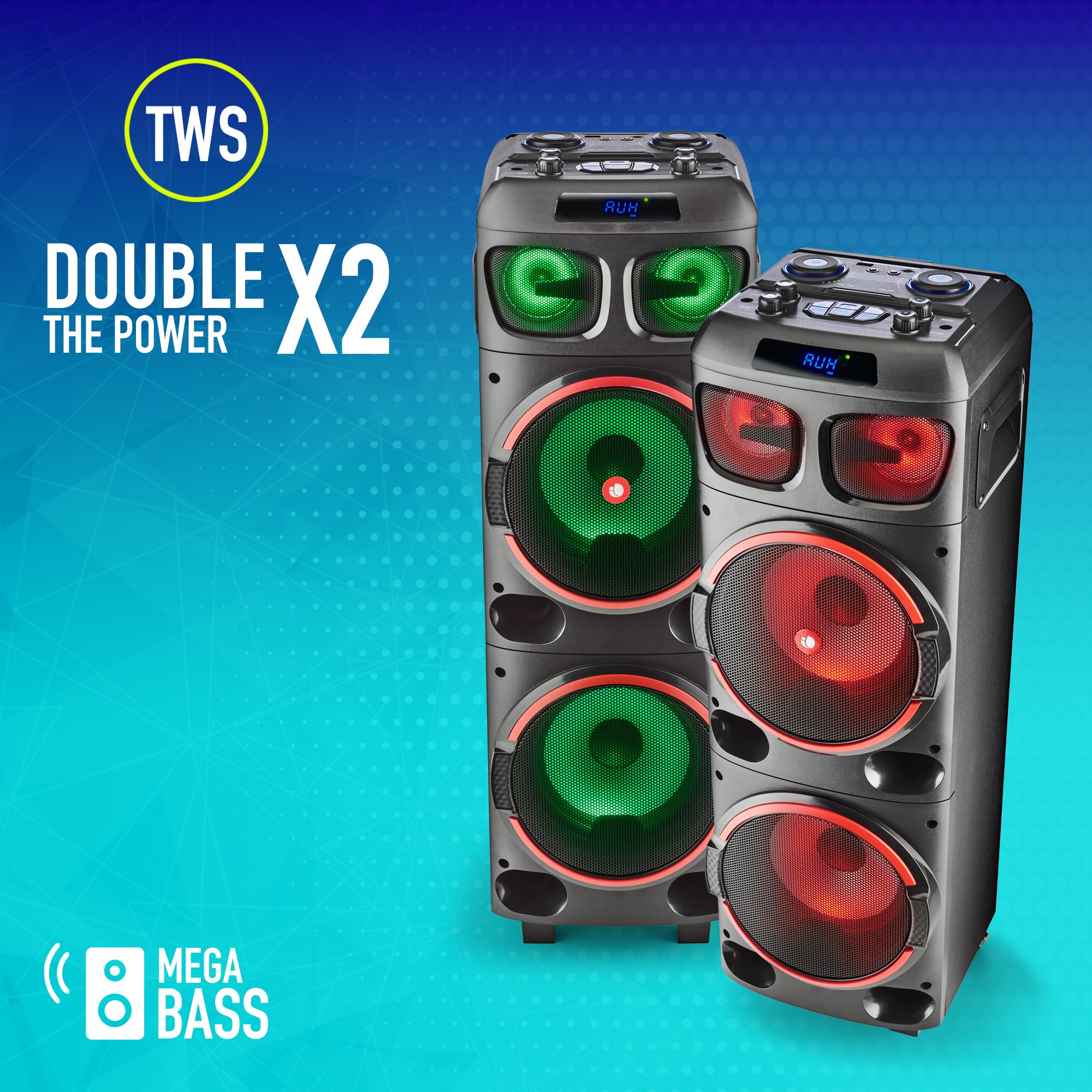 300W DOPPIA 8" SUBWOOFER COMPATIBILE CON TECNOLOGIA BLUETOOTH 4.2 + EDR E TWS. USB/MICRO SD/AUX IN.