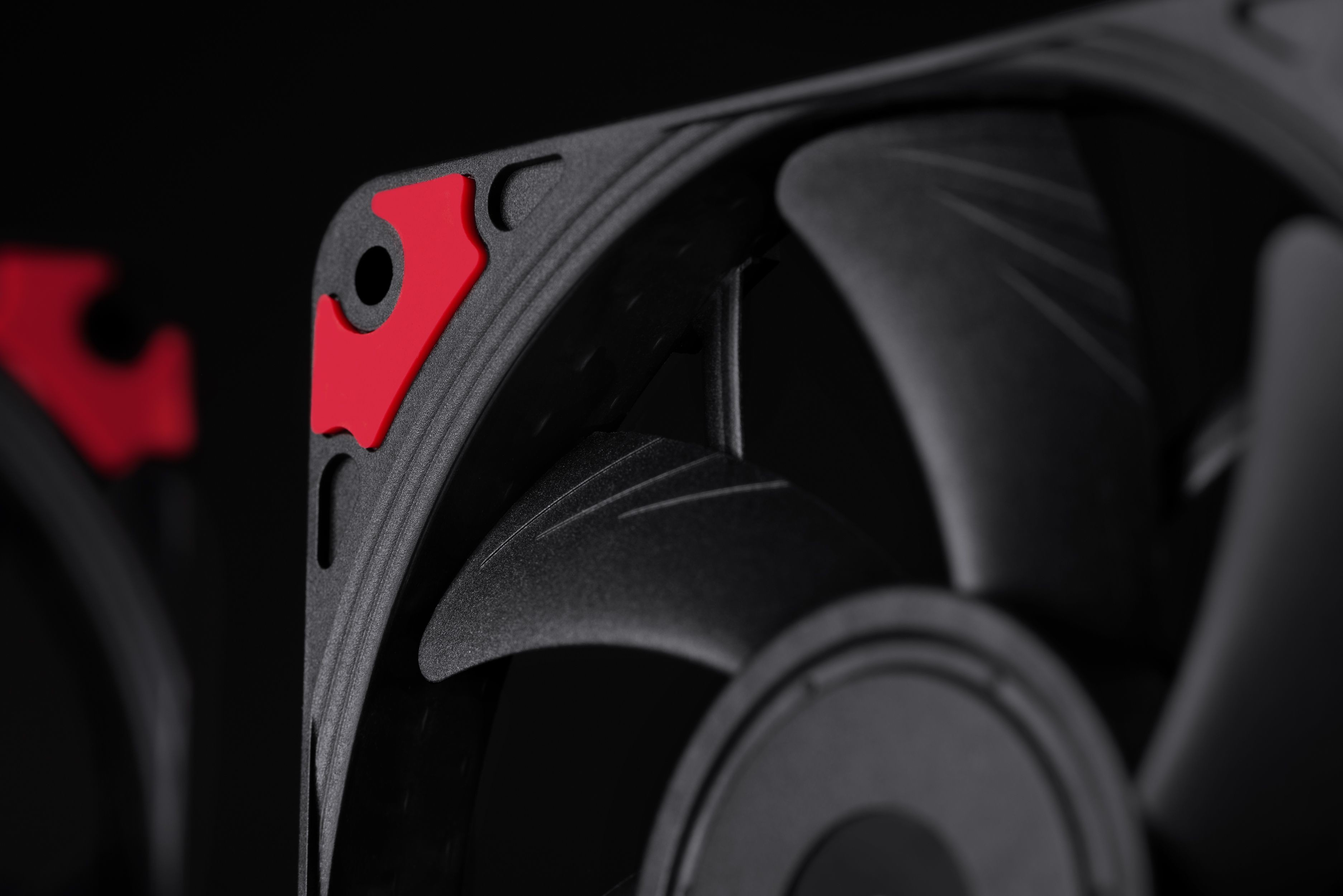 Noctua NF-A12X15 PWM CH.BK.S. Tipo: Ventilatore, Diametro del ventilatore: 12 cm, Numero di velocità: 2, Velocità (minima) di rotazione: 450 Giri/min, Velocità (massima) di rotazione: 1850 Giri/min, Rumorosità (velocità alta): 23,9 dB, Flusso d'aria: 94,2 m³/h, pressione dell'aria massima: 1,53 mmH2O, Tipo di cuscinetto: Self-Stabilising Oil-pressure Bearing (SSO). Larghezza: 120 mm, Profondità: 120 mm, Altezza: 15 mm. Colore del prodotto: Nero