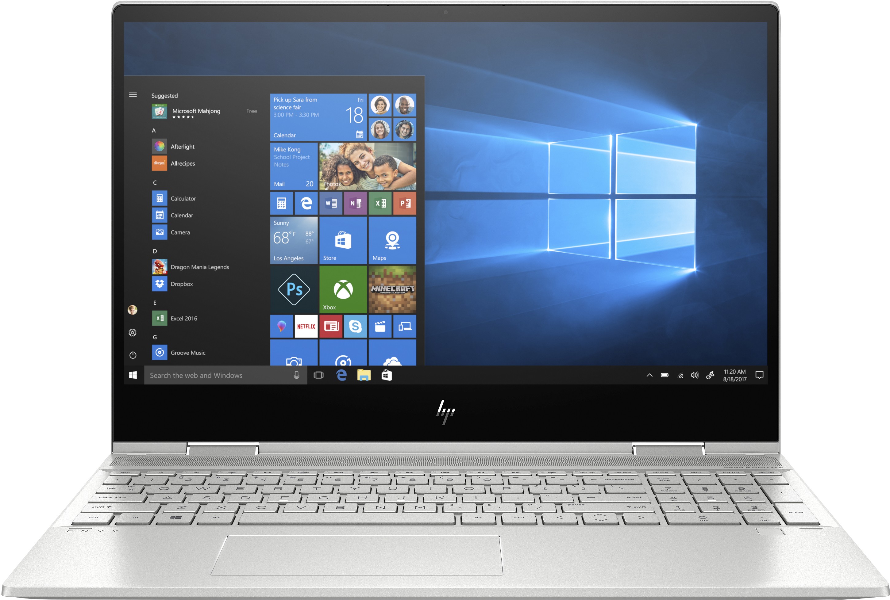 HP ENVY 15-dr0008nl. Tipo di prodotto: Ibrido (2 in 1). Famiglia processore: Intel® Core™ i5 di ottava generazione. Fattore di forma: Convertibile (a cartella). Modello del processore: i5-8265U, Frequenza del processore: 1,6 GHz. Dimensioni schermo: 39,6 cm (15.6"), Risoluzione del display: 1920 x 1080 Pixel, Touch screen. RAM installata: 8 GB, Tipo di RAM: DDR4-SDRAM. Capacità totale di archiviazione: 512 GB, Supporto di memoria: SSD. Scheda grafica integrata. Sistema operativo incluso: Windows 10 Home. Colore del prodotto: Argento
