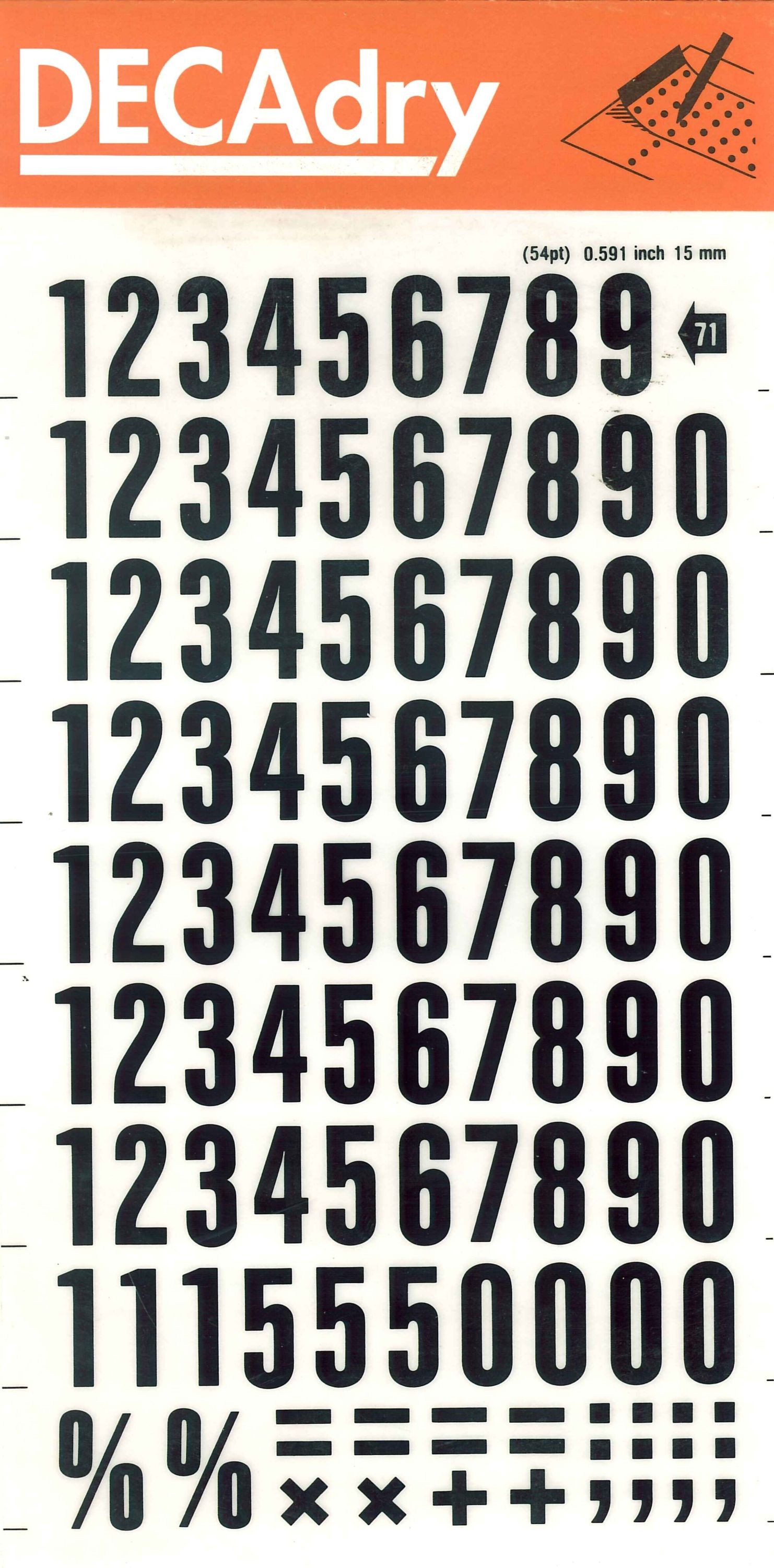 I numeri adesivi di colore nero alti 15 mm (54 pt) sono la soluzione perfetta per identificare e contrassegnare tutto ciò di cui hai bisogno in modo rapido, pulito ed efficace. Ogni confezione contiene 1 foglio da 105 caratteri, che ti permetterà di avere abbastanza numeri per i tuoi progetti. Queste le caratteristiche del prodotto: