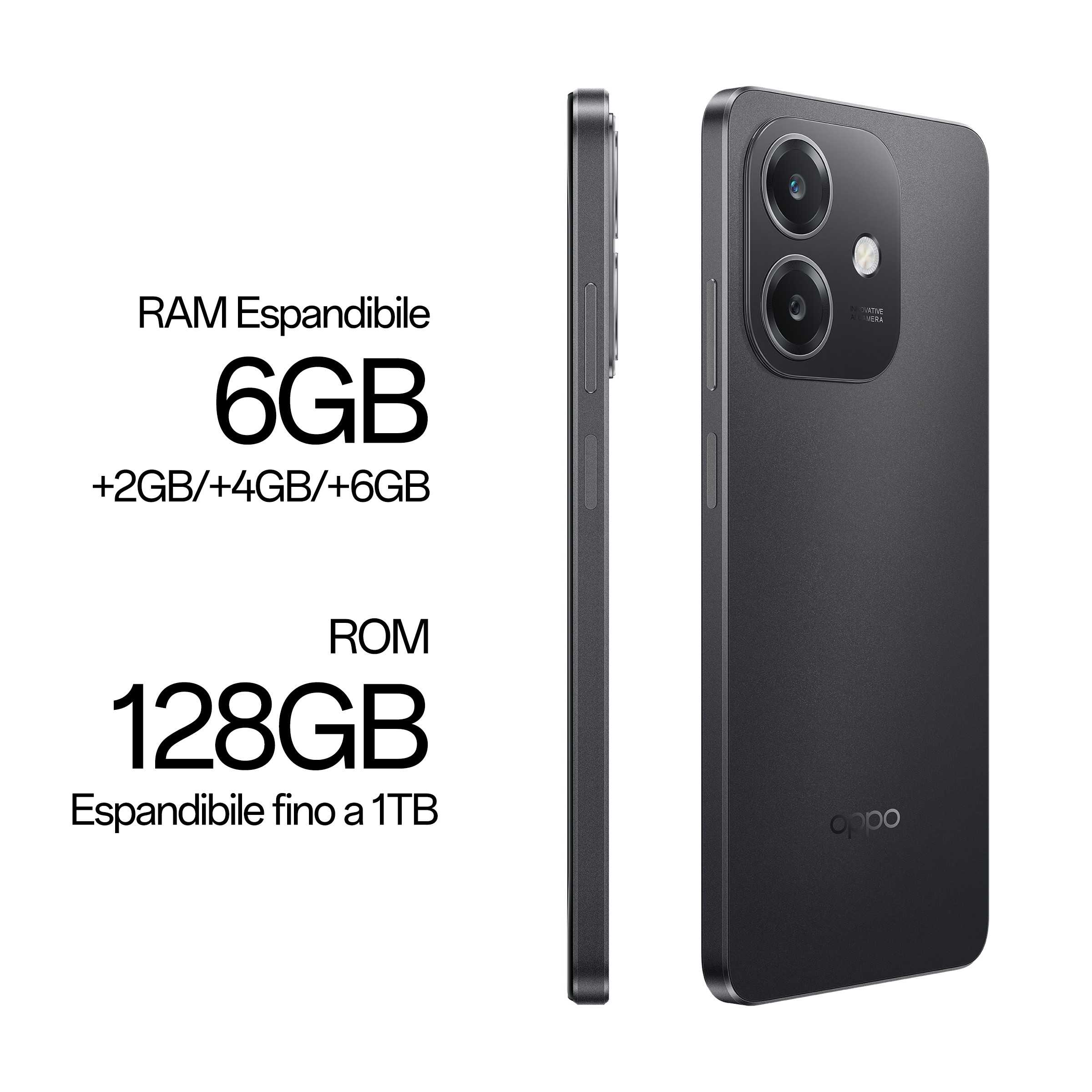 OPPO A40 Smartphone, Fotocamera AI 50MP, Selfie 5MP, Display 6.67” 90HZ LCD HD+, 5100mAh, RAM 12 GB (6+6) + ROM 128GB, IP54, [Versione Italia], Sparkle Black, 16,9 cm (6.67"), 6 GB, 128 GB, 50 MP, Android 14, Nero