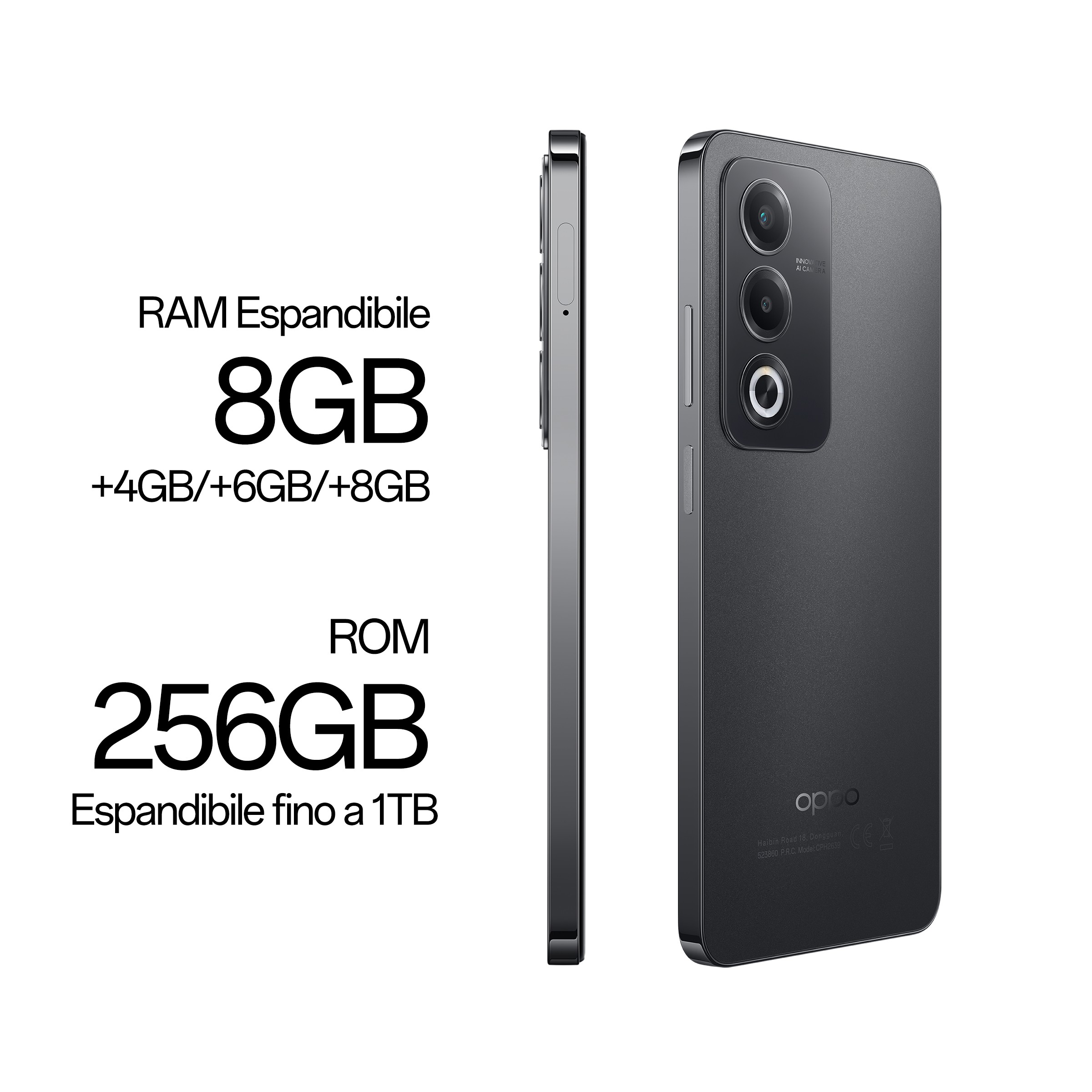 OPPO A80 5G Smartphone, AI Doppia Fotocamera 50+2MP, Selfie 8MP, Display 6.67” 120HZ LCD HD+, 5100mAh, RAM 16 GB (8+8) + ROM 256GB, IP54, [Versione Italia], Starry Black. Dimensioni diagonale schermo: 16,9 cm (6.67"), Risoluzione del display: 1604 x 720 Pixel. Famiglia processore: MediaTek, Modello del processore: 6300. Capacità della RAM: 8 GB, Tipo di RAM: LPDDR4X, Capacità memoria interna: 256 GB. Risoluzione fotocamera posteriore (numerico): 50 MP, Tipo di fotocamera posteriore: Doppia fotocamera. Capacità della scheda SIM: Doppia SIM. Sistema operativo incluso: Android 14. Capacità della batteria: 5100 mAh. Colore del prodotto: Nero. Peso: 186 g