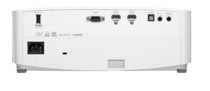 Optoma UHD35STx. Luminosità proiettore: 3600 ANSI lumen, Tecnologia di proiezione: DLP, Risoluzione nativa del proiettore: 2160p (3840x2160). Tipo di sorgente luminosa: Lampada, Durata della sorgente luminosa: 4000 h, Durata della sorgente luminosa (modalità risparmio): 10000 h. Lunghezza focale fissa: 7,51 mm, Tipo di zoom: Fisso, Rapporto di proiezione: 0.5:1. Formati 3D supportati: Imballaggio del telaio. Tipo interfaccia seriale: RS-232, Tipo di connettore HDMI: Taglia piena