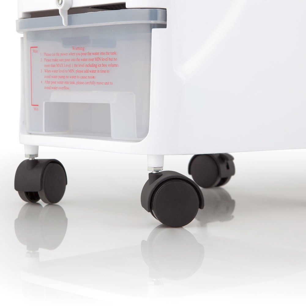 Orbegozo AIR 40. Tipo: Raffrescatore evaporativo, Colore del prodotto: Bianco, Numero di ruote: 4 ruota(e). Capacità tanica acqua: 3,5 L, Durata massima del timer: 8 h. Carico di collegamento: 65 W. Larghezza: 244 mm, Profondità: 310 mm, Altezza: 595 mm