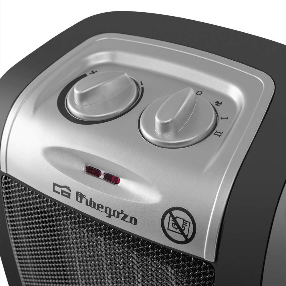 Orbegozo CR 5017, Riscaldatore ambiente elettrico con ventilatore, Ceramica, Interno, Pavimento, Nero, Argento, Manopola