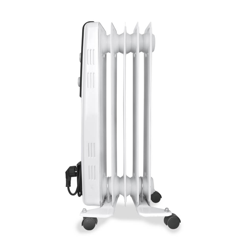 Orbegozo RF-1000. Tipo: Riscaldatore ambiente elettrico a olio, Tipologia elemento riscaldante: Olio. Adatto per: Interno, Opzioni di posizionamento: Pavimento, Colore del prodotto: Nero, Bianco. Potenza termica: 1000 W, Potenza termica (min): 500 W. Tensione di ingresso AC: 230 V, Frequenza di ingresso AC: 50 Hz. Larghezza: 280 mm, Profondità: 340 mm, Altezza: 630 mm