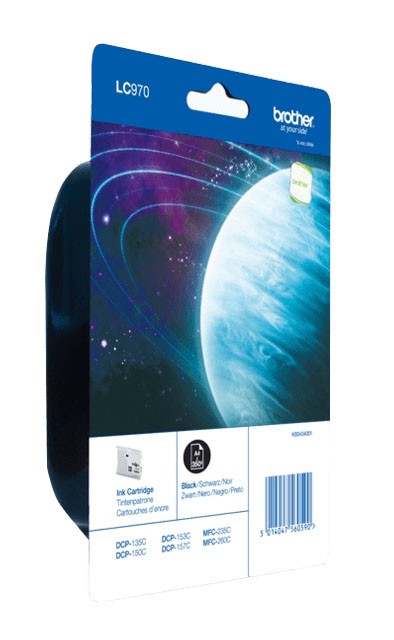 Brother LC970BK. Tipo di inchiostro nero: Inchiostro a base di pigmento, Tipo di fornitura: Confezione singola, Quantità per pacco: 1 pz, Resa in pagine dell'inchiostro a colori: 350 pagine